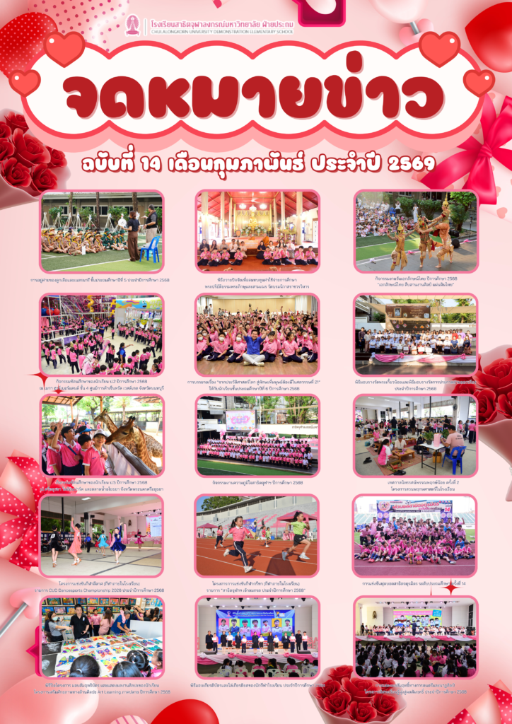 จดหมายข่าว โรงเรียนสาธิตจุฬาลงกรณ์มหาวิทยาลัย ฝ่ายประถม ฉบับที่ 14 เดือนกุมภาพันธ์ ประจำปี 2569 By Web Master|2026-03-04T11:55:56+07:00March 4, 2026|ข่าวประชาสัมพันธ์| View Larger Image จดหมายข่าว โรงเรียนสาธิตจุฬาลงกรณ์มหาวิทยาลัย ฝ่ายประถม ฉบับที่ 14 เดือนกุมภาพันธ์ ประจำปี 2569