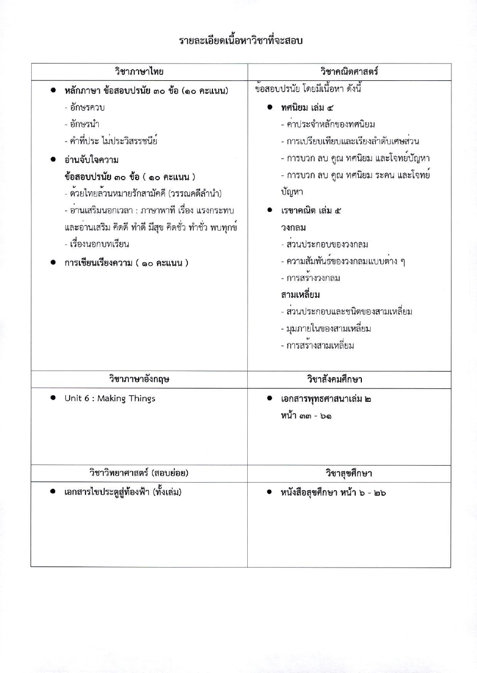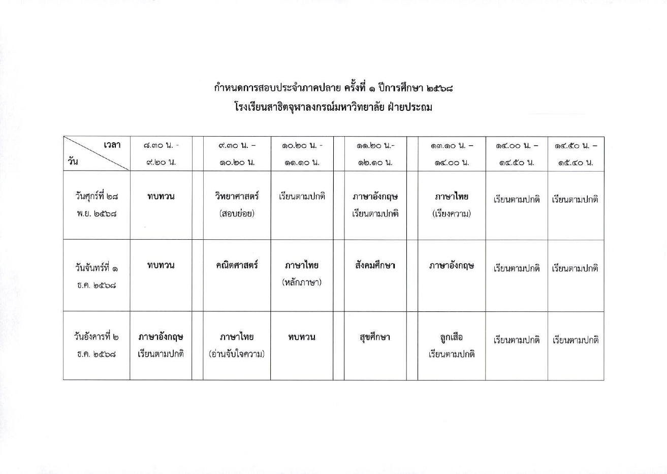 จดหมายโรงเรียน เรื่อง กำหนดการสอบภาคปลาย ครั้งที่ 1 สำหรับนักเรียนระดับชั้นประถมศึกษาปีที่ 5