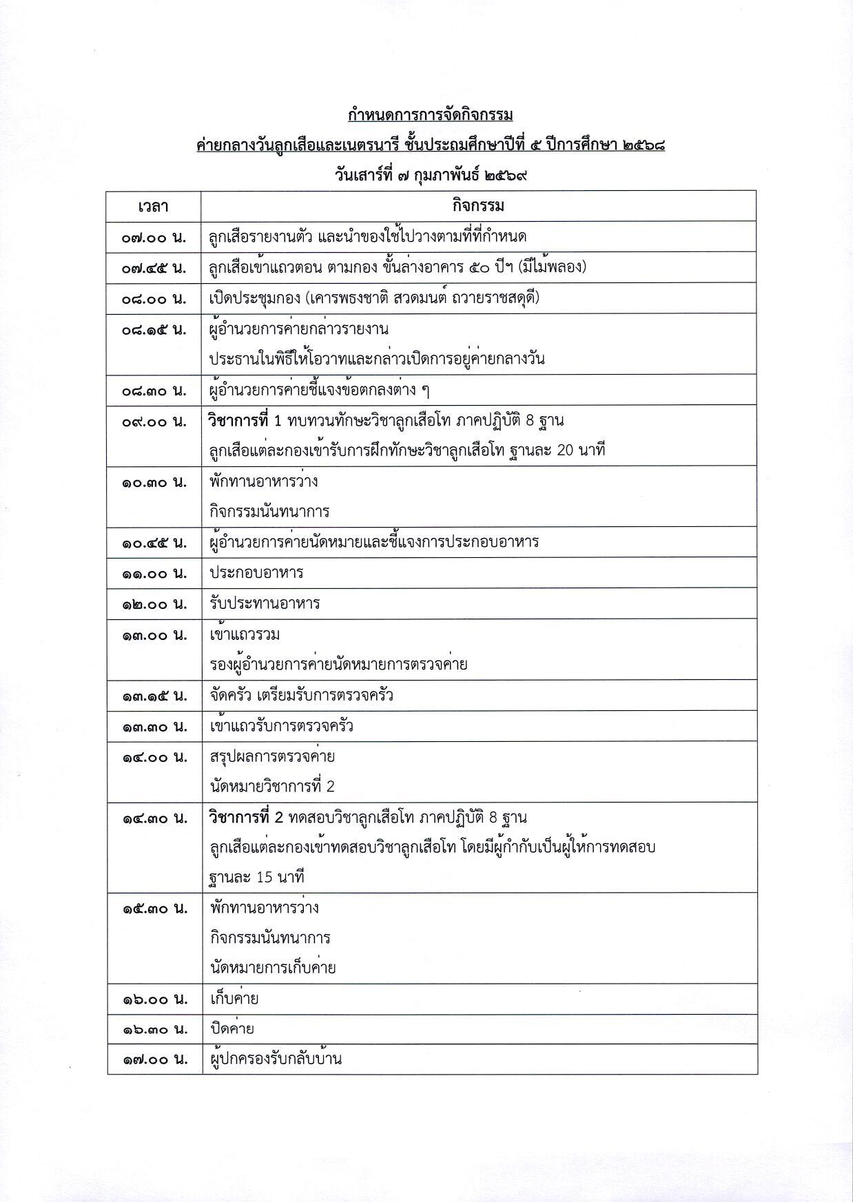 จดหมายโรงเรียน เรื่อง การอยู่ค่ายกลางวันของลูกเสือ-เนตรนารี ระดับชั้นประถมศึกษาปีที่ 5 ปีการศึกษา 2568