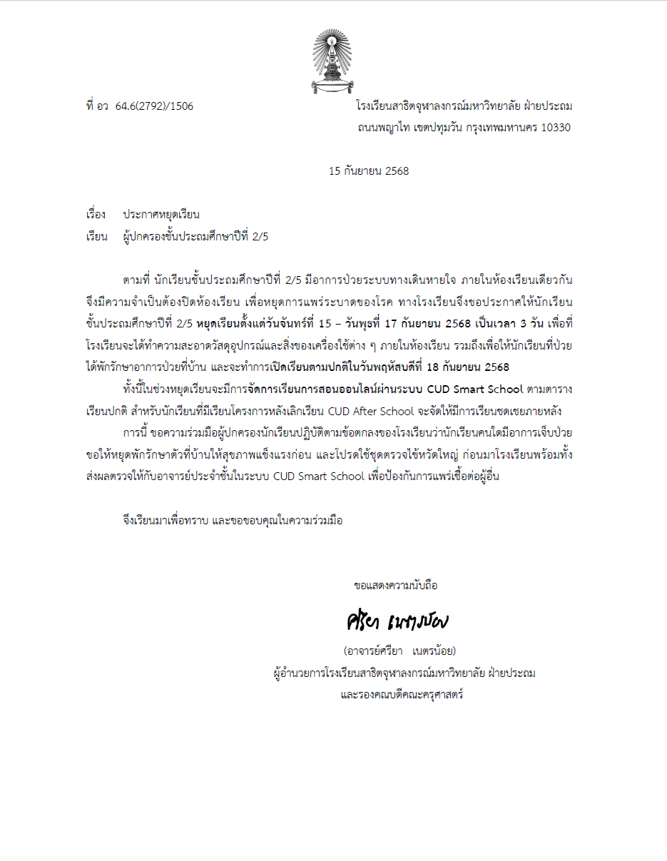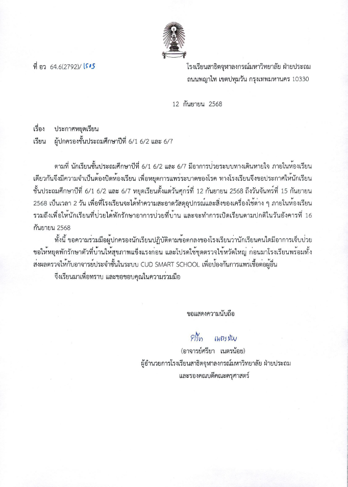 จดหมายโรงเรียน เรื่อง ขออนุญาตพานักเรียนระดับชั้นประถมศึกษาปีที่ 4 ไปทัศนศึกษาพิพิธภัณฑ์สถานธรรมชาติวิทยา