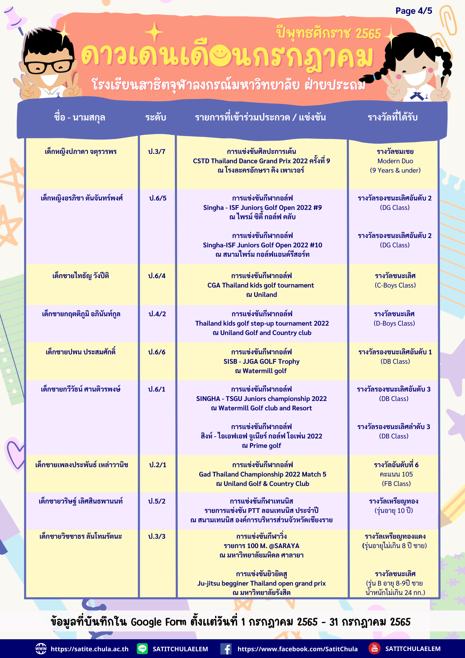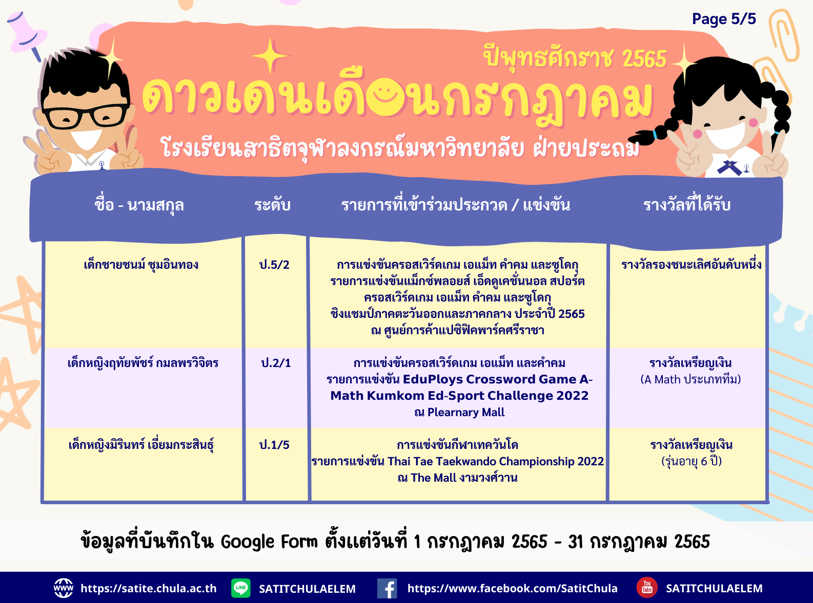 ดาวเด่นเดือนกรกฎาคม 2565 (ข้อมูลบันทึกใน Google Form ตั้งแต่วันที่ 1 กรกฎาคม 2565 – 31 กรกฎาคม 2565)