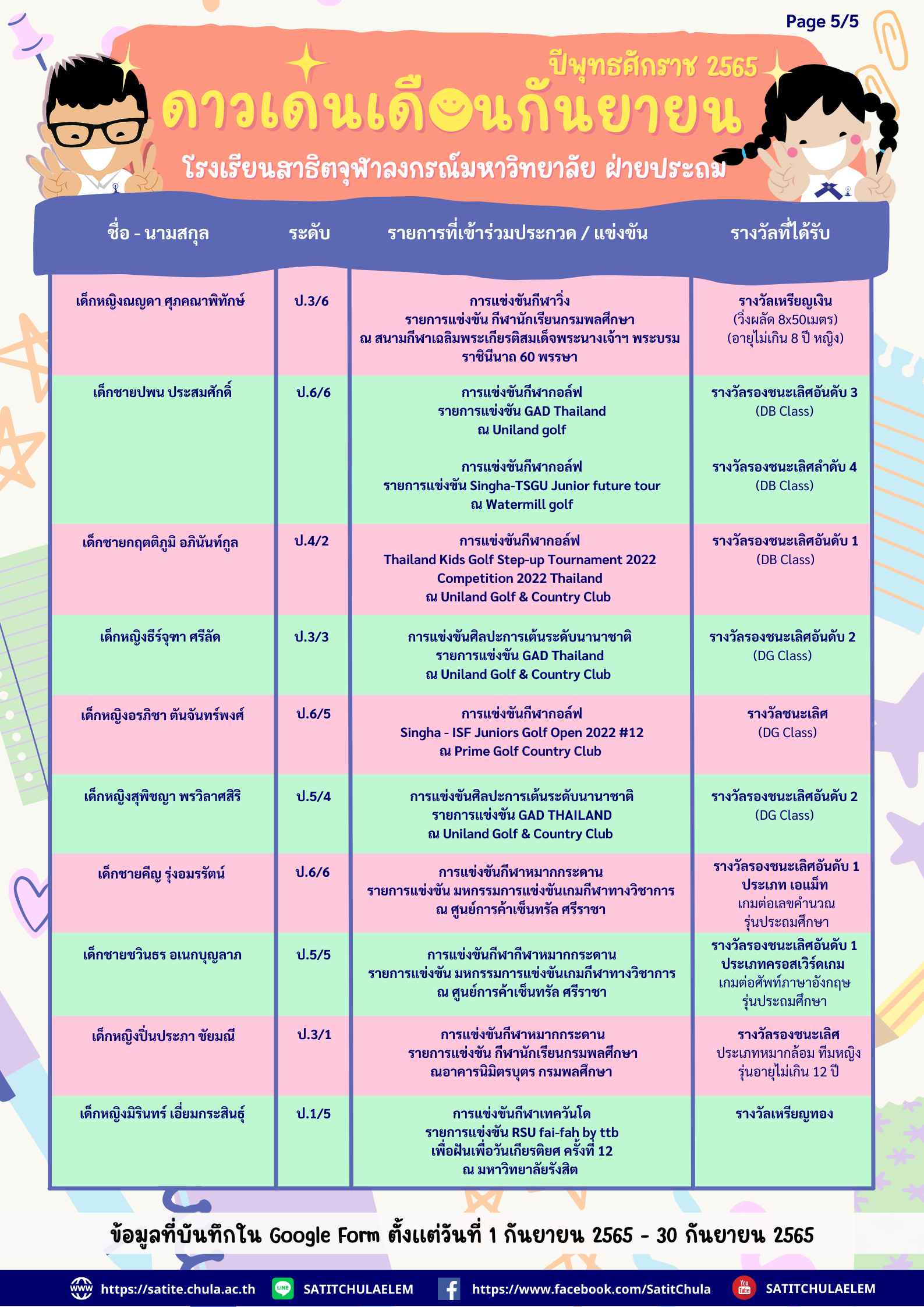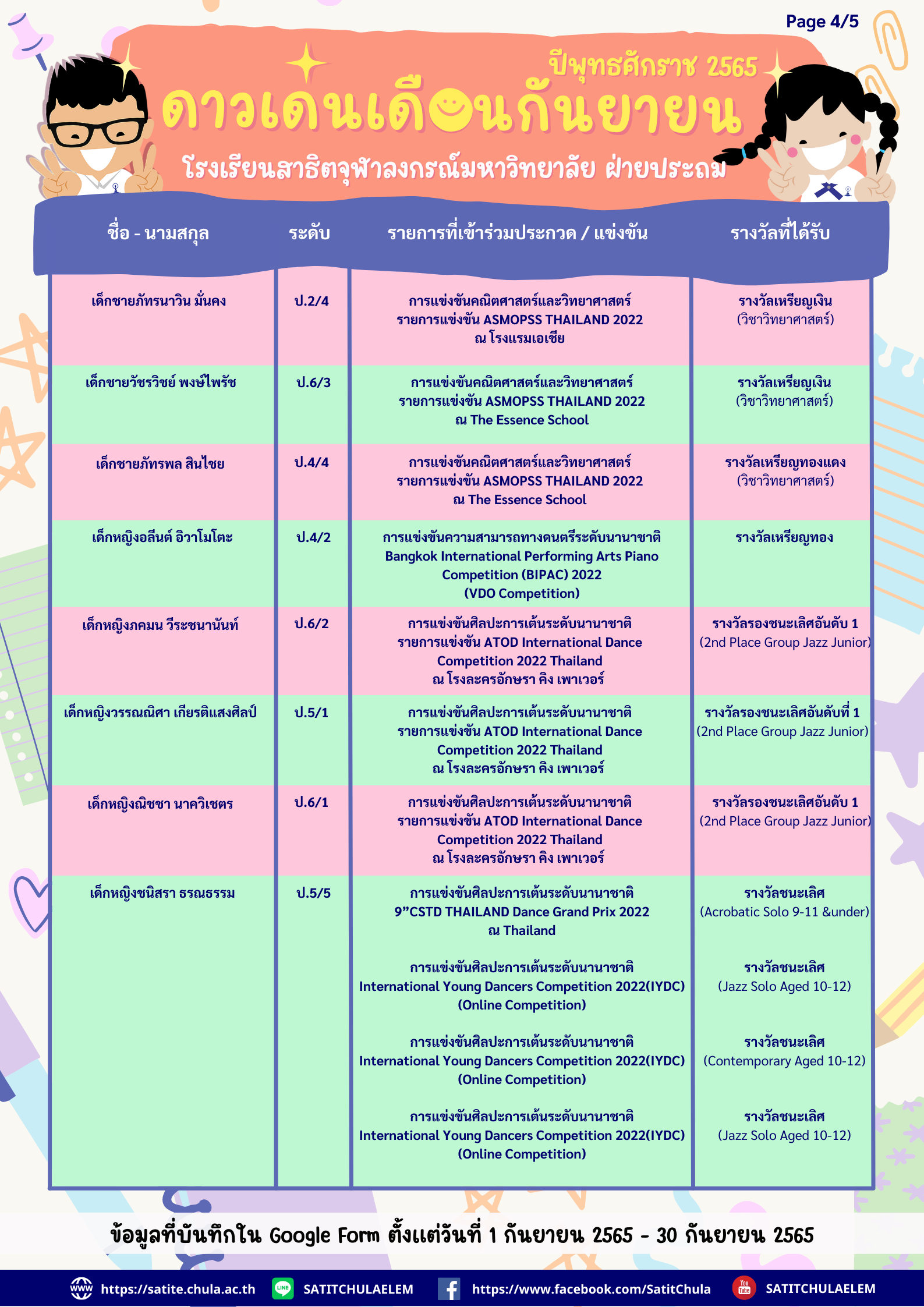 ดาวเด่นเดือนกันยายน 2565 (ข้อมูลบันทึกใน Google Form ตั้งแต่วันที่ 1 กันยายน 2565 – 30 กันยายน 2565)