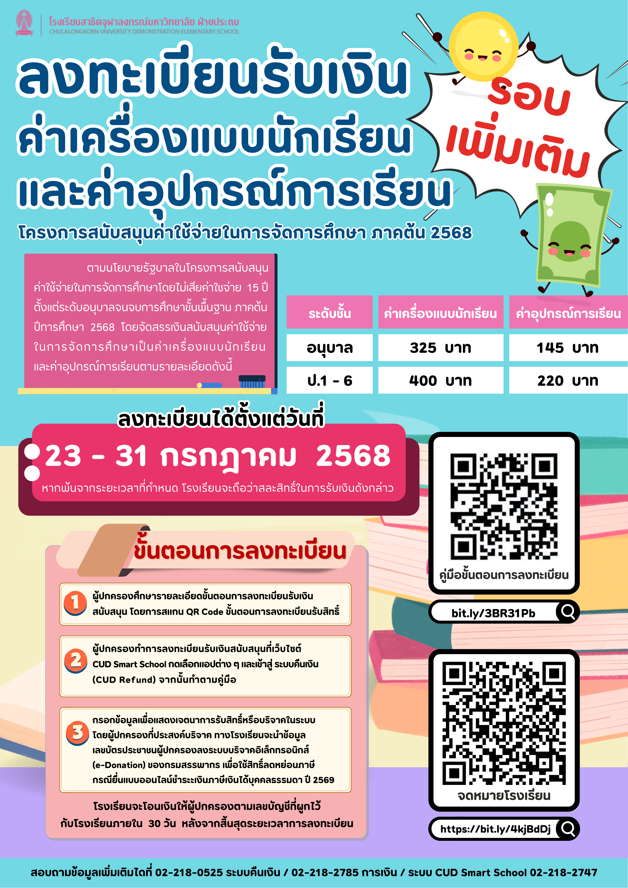 การลงทะเบียนรับเงินค่าเครื่องแบบนักเรียนและค่าอุปกรณ์การเรียนตามโครงการสนับสนุนค่าใช้จ่ายในการจัดการศึกษา ภาคต้น ปีการศึกษา 2568 (รอบเพิ่มเติม)