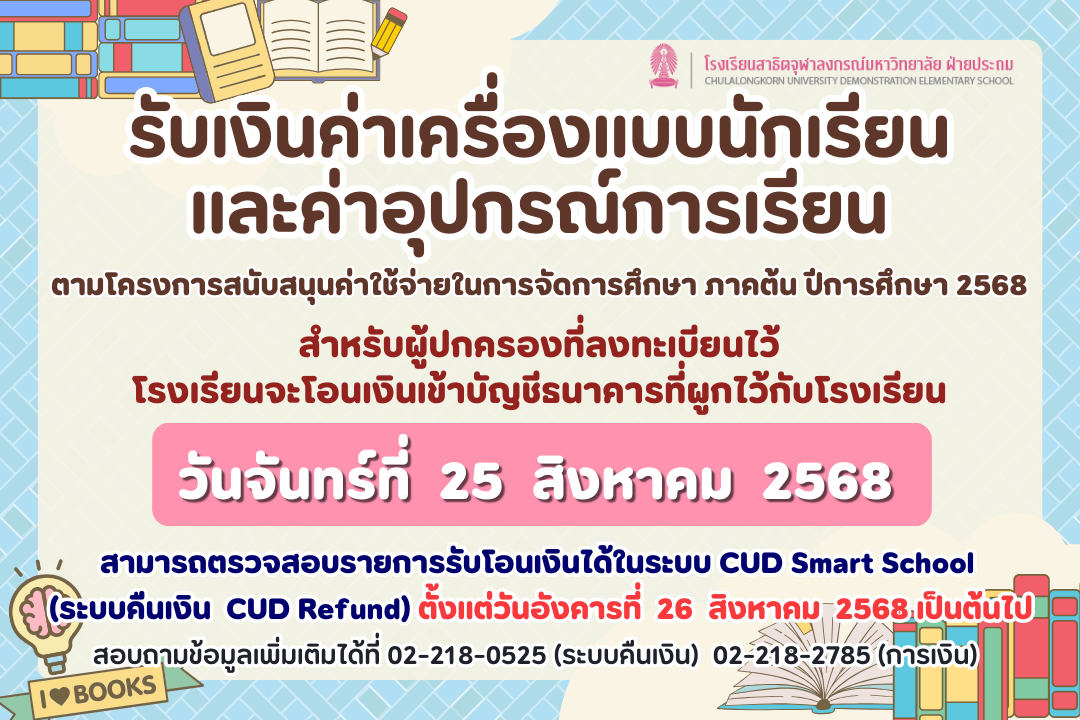 การรับเงินค่าเครื่องแบบนักเรียนและค่าอุปกรณ์การเรียนตามโครงการสนับสนุนค่าใช้จ่ายในการจัดการศึกษา ภาคต้น ปีการศึกษา 2568
