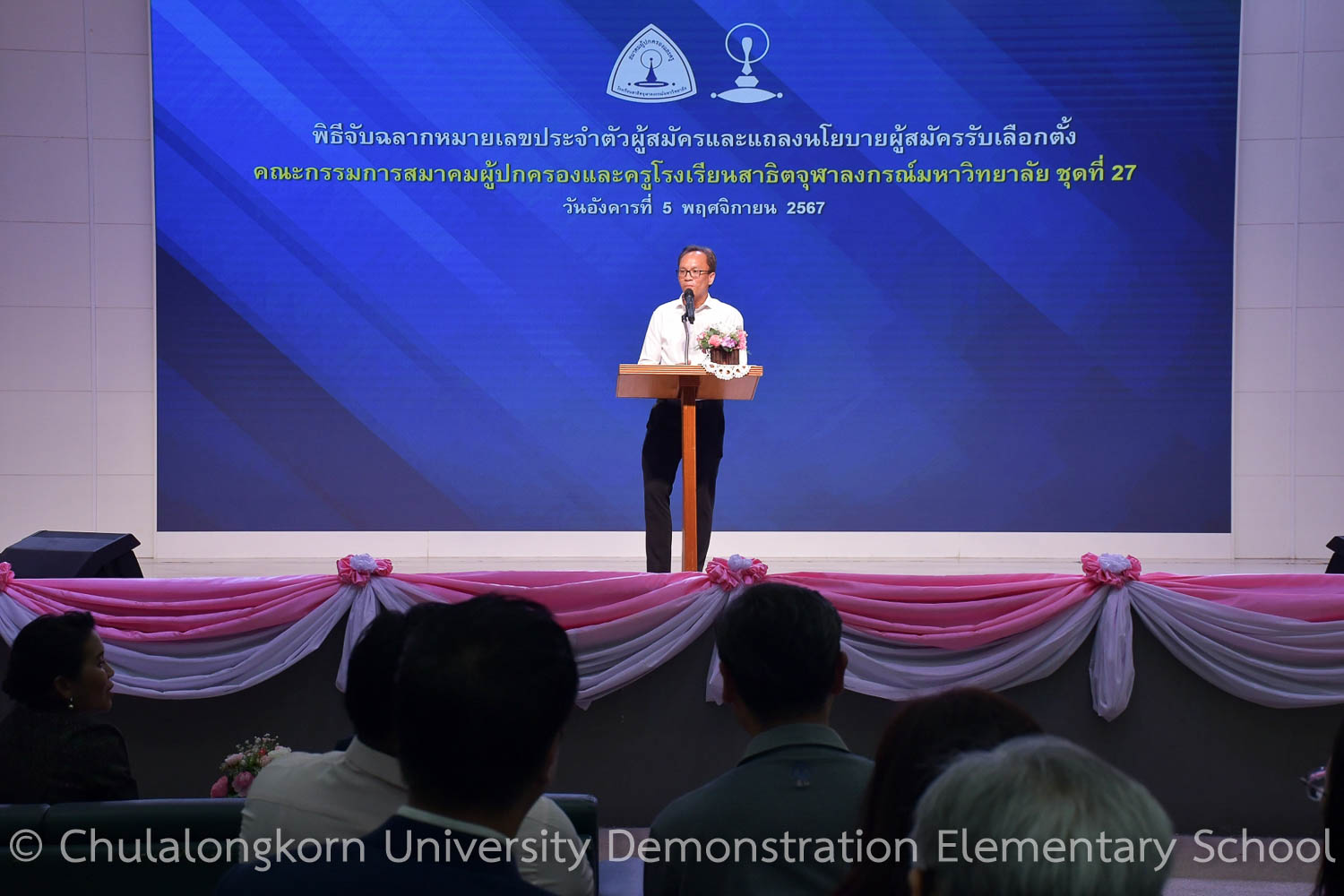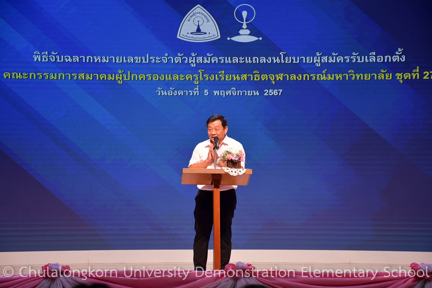 พิธีจับสลากหมายเลขประจำตัวผู้สมัคร และพิธีแถลงนโยบายผู้รับสมัครรับเลือกตั้งกรรมการสมาคมผู้ปกครองและครูโรงเรียนสาธิตจุฬาลงกรณ์มหาวิทยาลัย ชุดที่ 27 (05/11/67) By Web Master|2024-11-08T15:56:12+07:00November 5, 2024|ข่าวกิจกรรมนักเรียน| View Larger Image