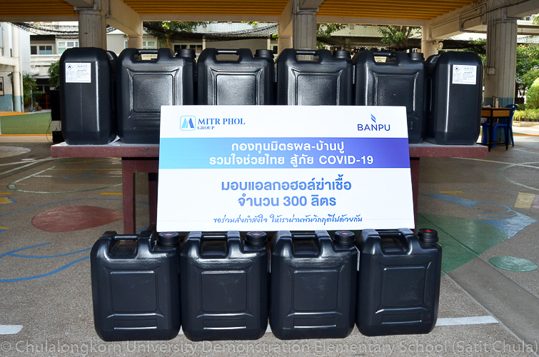 ผู้อำนวยการโรงเรียนและผู้ช่วยผู้อำนวยการฝ่ายบริหาร รับมอบแอลกอฮอล์ฆ่าเชื้อจากกองทุนมิตรผล-บ้านปู รวมใจช่วยไทย สู้ภัย COVID-19 (18/01/65)