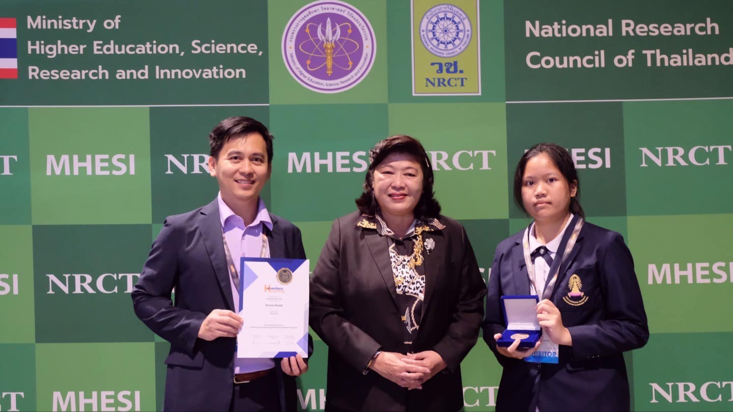 สำนักงานการวิจัยแห่งชาติ (วช.) กระทรวงการอุดมศึกษา วิทยาศาสตร์ วิจัยและนวัตกรรม นำทีมนักประดิษฐ์ไทยสร้างความภาคภูมิใจให้กับประเทศไทยอีกครั้ง ในการคว้ารางวัลจากการประกวดสิ่งประดิษฐ์และนวัตกรรมในงาน AEII 2023 ในระดับต่างๆ โดยส่วนหนึ่งของผลงานที่ได้รับรางวัล ในระดับเหรียญทอง ได้แก่