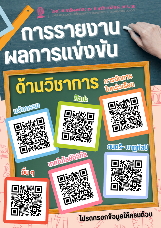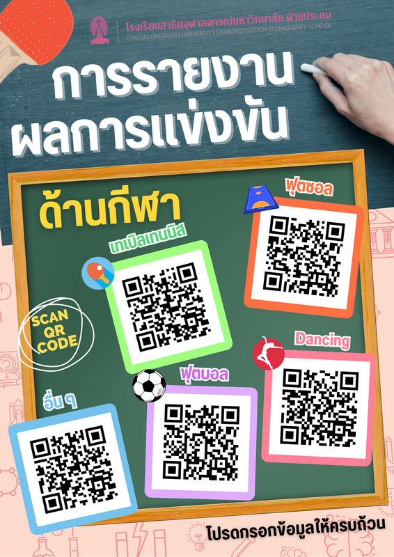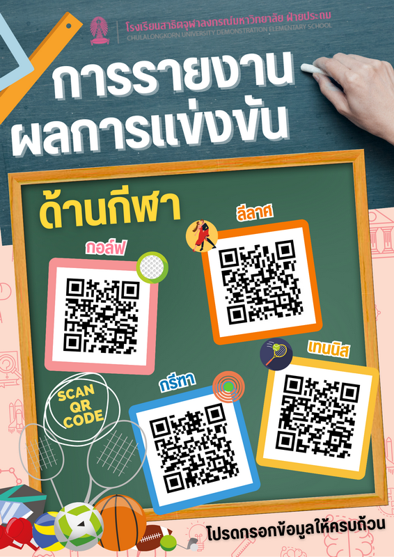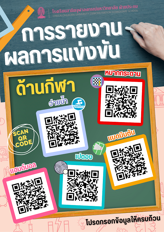 สำหรับผู้ปกครองที่ต้องการส่งรายงานผลการแข่งขันทางด้านวิชาการและด้านกีฬา เพื่อพิจารณาบัตรเกียรติยศ และประชาสัมพันธ์ดาวเด่น สามารถส่งรายงานผลการแข่งขันผ่านระบบออนไลน์ที่โรงเรียนได้จัดทำขึ้น โดยสแกน QR Code หรือคลิกลิงก์ตามหัวข้อเพื่อกรอกข้อมูล