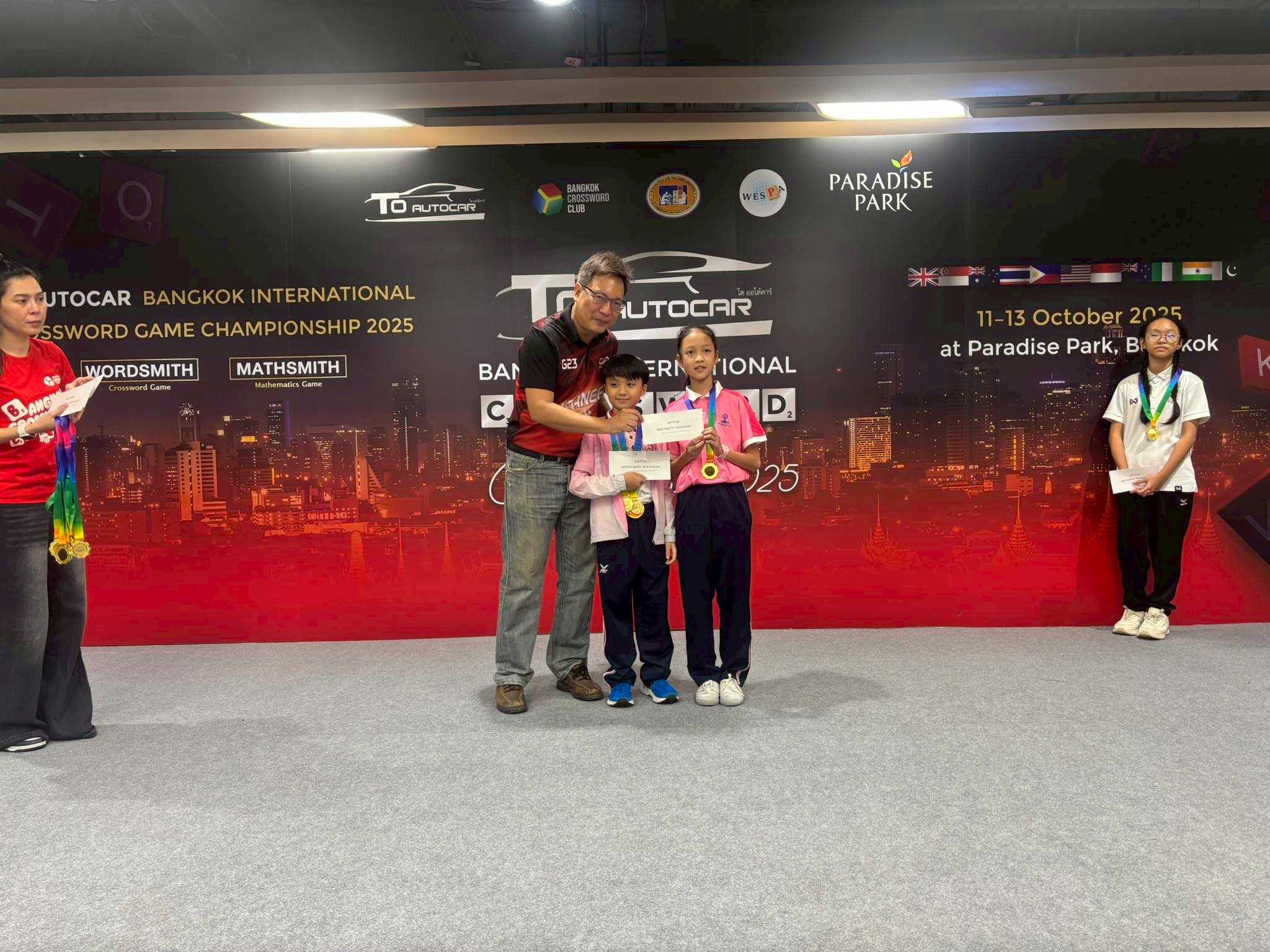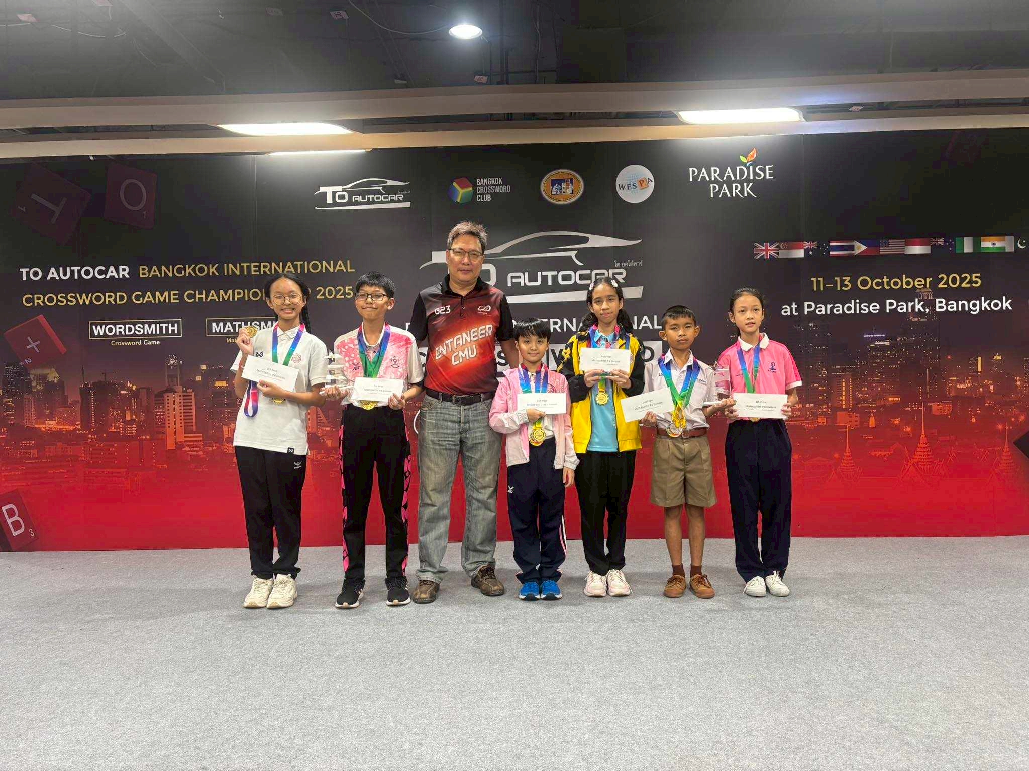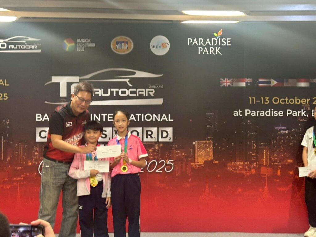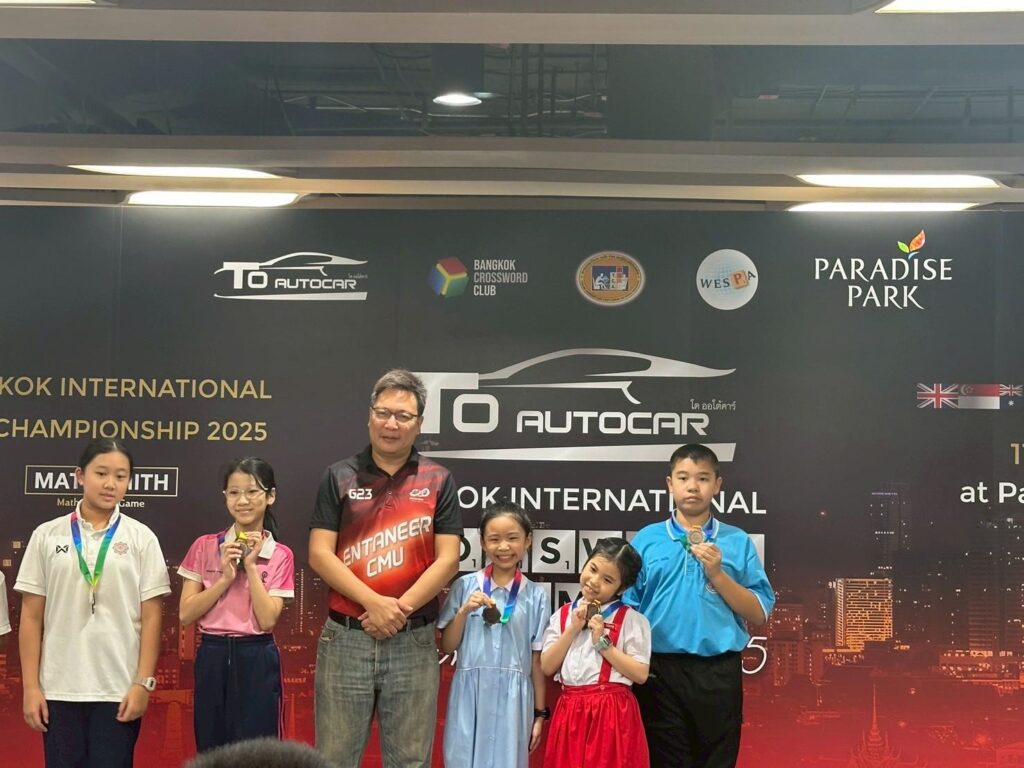 จากการแข่งขันกีฬาหมากกระดาน ประเภทเอแม็ท (A-math) และครอสเวิร์ด (Crossword) รายการ To Autocar Bangkok International Crossword Game Championship 2025 ระหว่างวันที่ 11 – 13 ตุลาคม 2568 ณ ศูนย์การค้า พาราซ์ พาร์ค กรุงเทพฯ