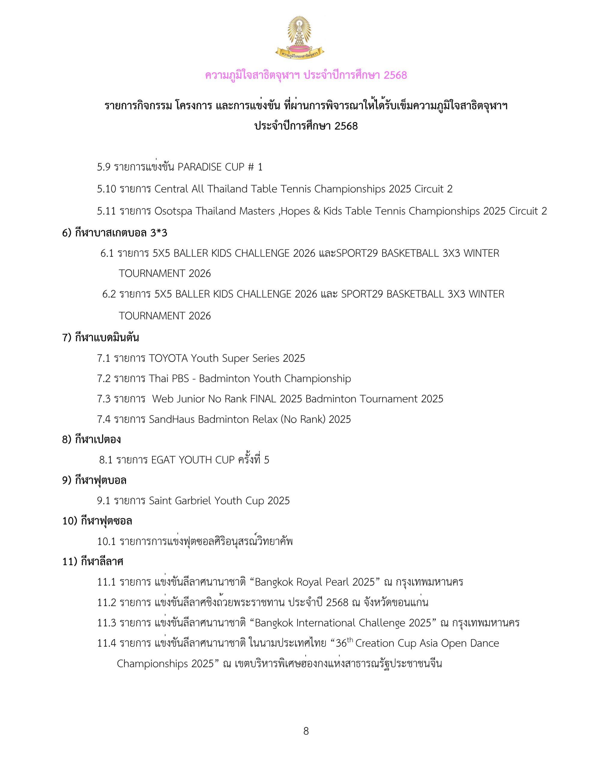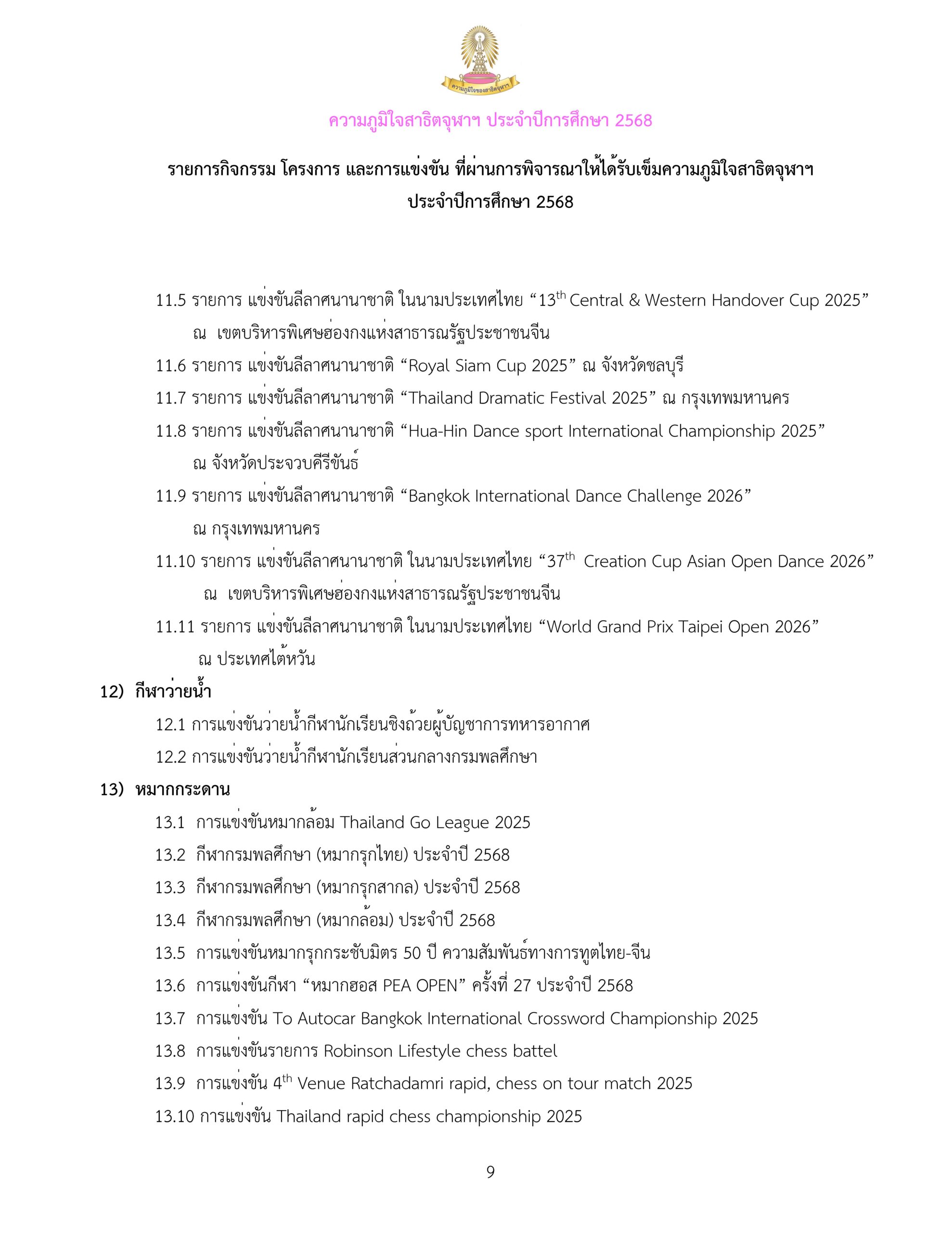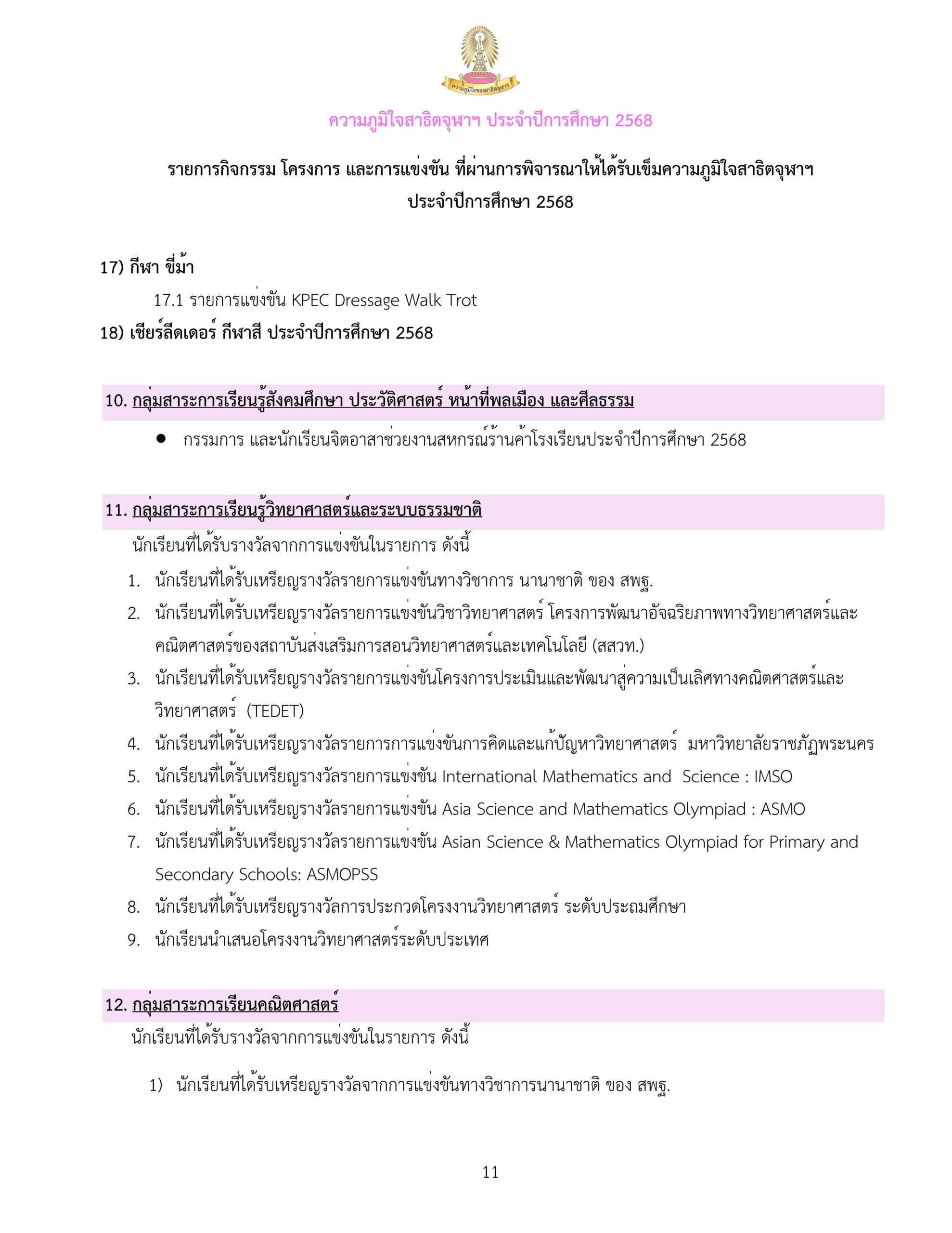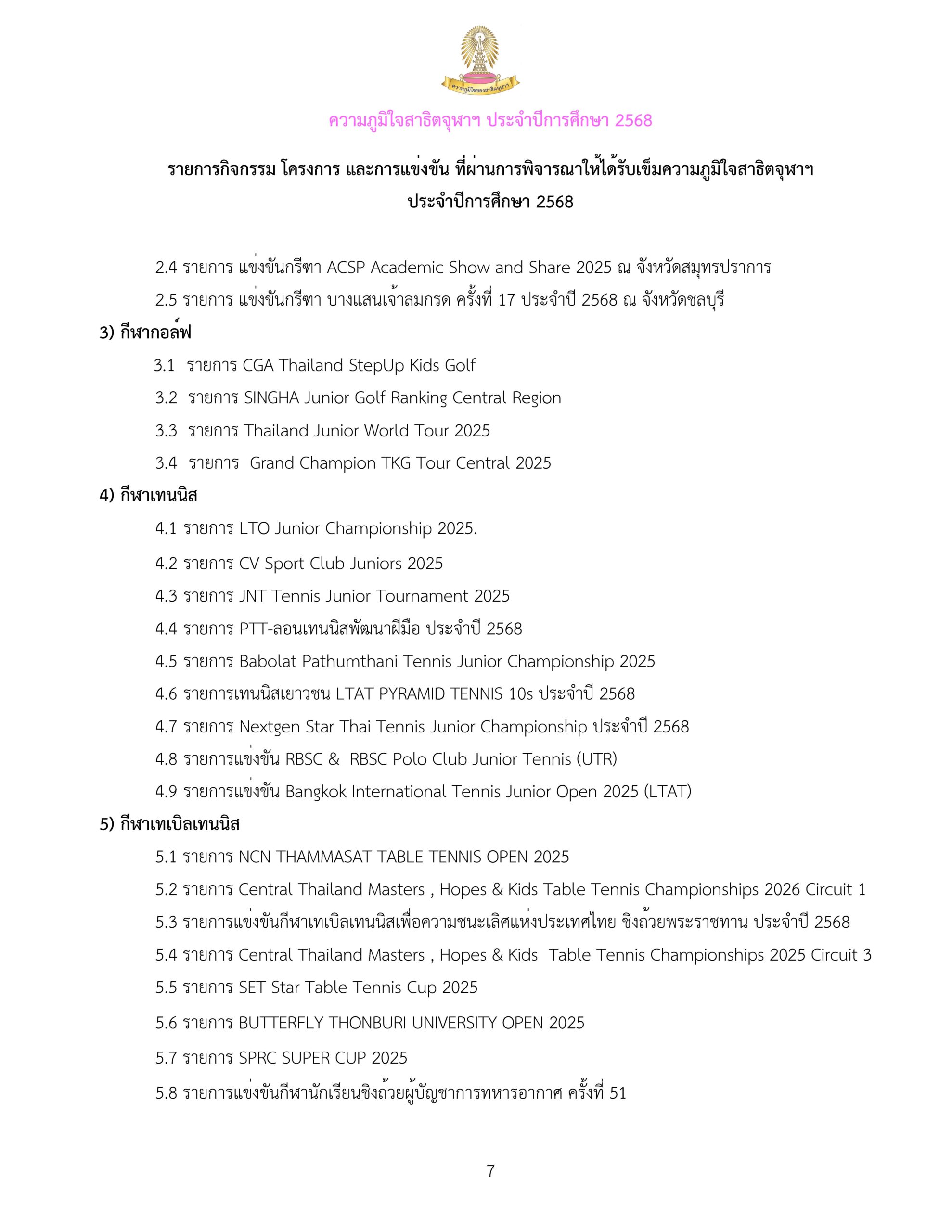 เพื่อให้เป็นวาระพิเศษในการแสดงความชื่นชมต่อนักเรียนที่เสียสละและมุ่งมั่นทำกิจกรรมเพื่อส่วนรวม สร้างชื่อเสียงให้แก่ตนเองและโรงเรียน ทางโรงเรียนจะมีการประกาศรายชื่อ รอบที่ 1 ในวันจันทร์ที่ 9 กุมภาพันธ์ 2569 บริเวณป้ายประชาสัมพันธ์ ชั้นล่างอาคาร 50 ปี สาธิตจุฬาฯ