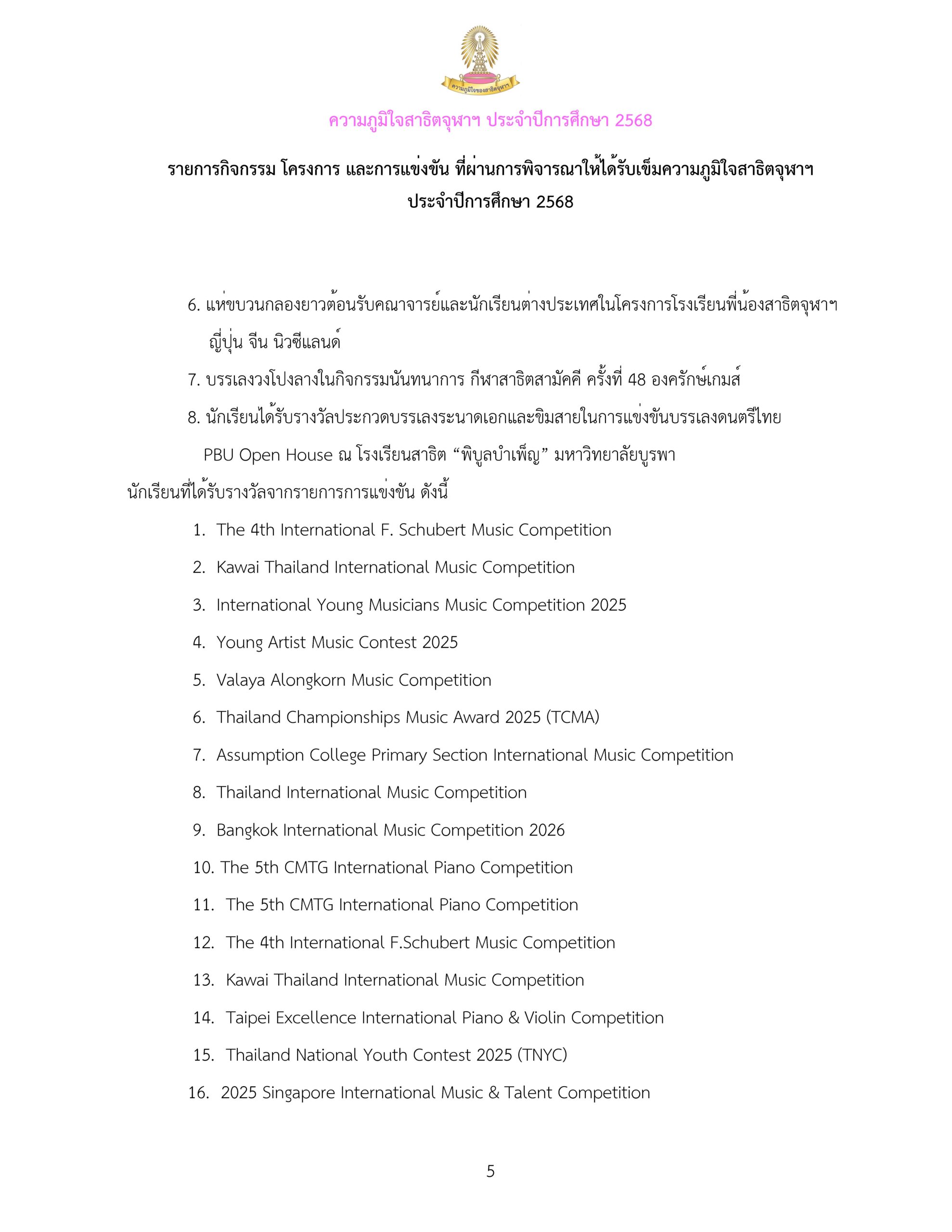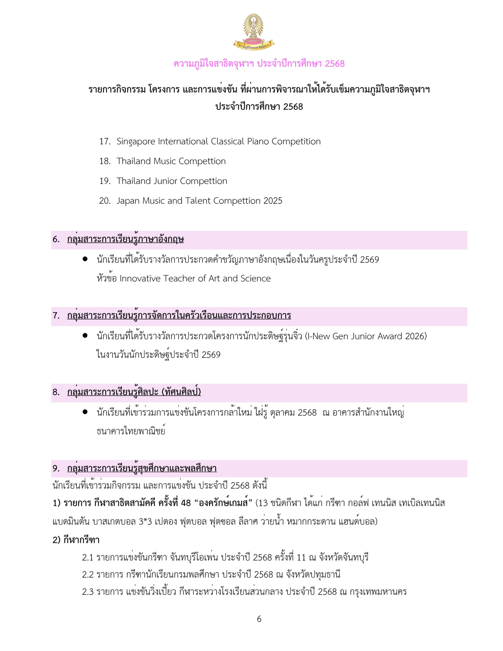 ทั้งนี้ นักเรียนทุกคนจะได้ร่วมรับประทานอาหารจัดเลี้ยงพิเศษในวันศุกร์ที่ 20 กุมภาพันธ์ 2569 ช่วงพักรับประทานอาหารกลางวัน เพื่อเป็นการสร้างขวัญและกำลังใจให้นักเรียนทุกคนที่ได้ประพฤติตนเป็นนักเรียนที่ดีซึ่งถือเป็นอีกหนึ่งความภาคภูมิใจของโรงเรียน