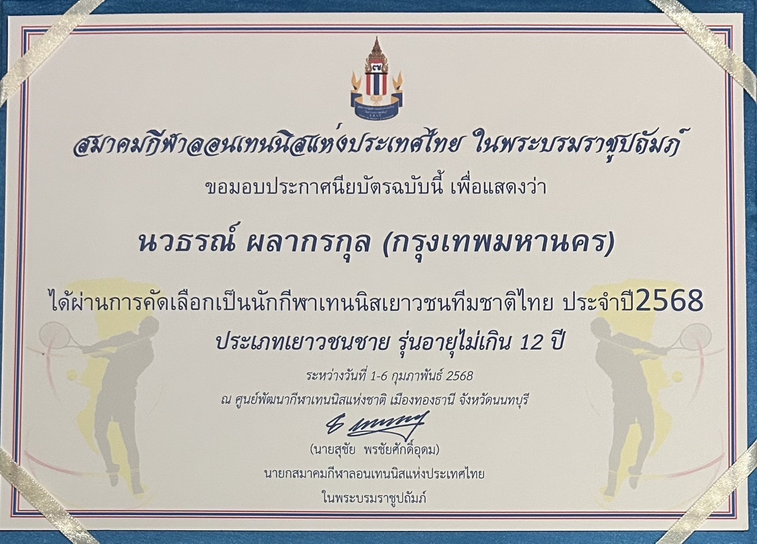 นักกีฬาเทนนิสเยาวชนทีมชาติไทย ประจำปี 2568