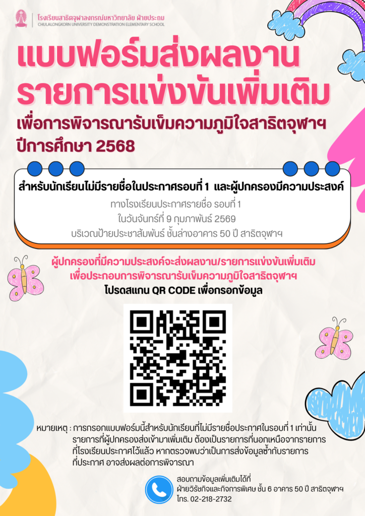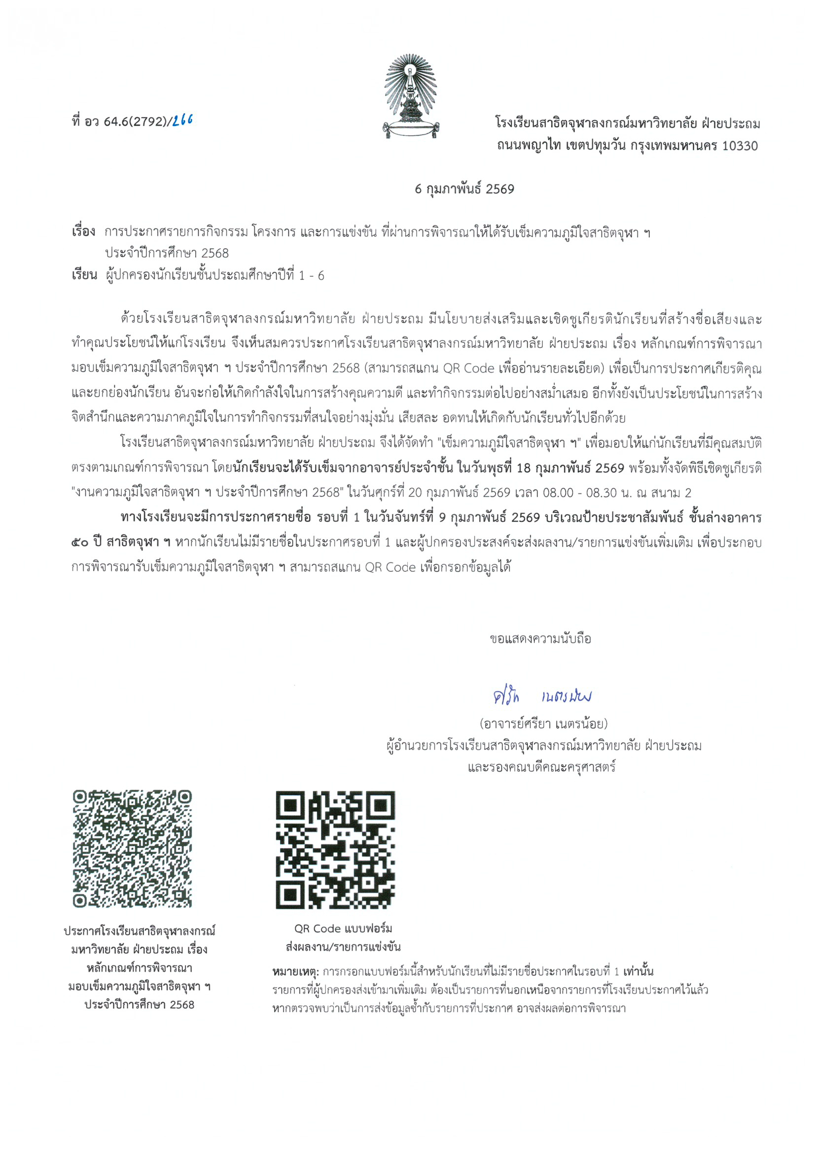 เพื่อการพิจารณารับเข็มความภูมิใจสาธิตจุฬาฯ ปีการศึกษา 2568