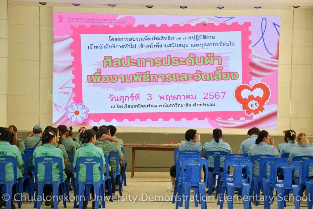 โครงการอบรมเพิ่มประสิทธิภาพการปฏิบัติงานสำหรับเจ้าหน้าที่บริการทั่วไปและเจ้าหน้าที่สายสนับสนุน หัวข้อ “ศิลปะการประดับผ้าเพื่องานพิธีการและจัดเลี้ยง” (03/05/67) By Web Master|2024-05-15T14:01:39+07:00May 3, 2024|ข่าวบุคลากร| View Larger Image