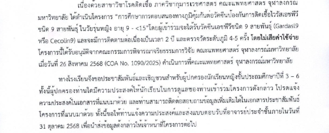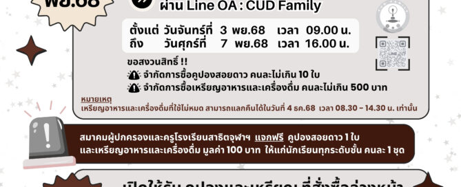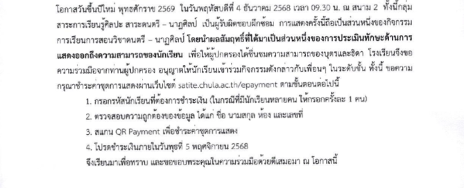 เรื่อง ขอเชิญร่วมกิจกรรมปีใหม่ ปี 2569 เรียน ท่านผู้ปกครอง ด้วยสมาคมผู้ปกครองและครูโรงเรียนสาธิตจุฬาลงกรณ์มหาวิทยาลัย ร่วมกับโรงเรียนสาธิตจุฬาลงกรณ์มหาวิทยาลัย ฝ่ายประถม จะจัดกิจกรรมปีใหม่ [...]