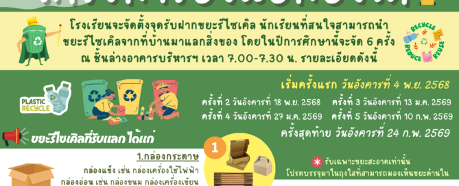 ฝ่ายกิจการนักเรียน โรงเรียนสาธิตจุฬาลงกรณ์มหาวิทยาลัย ฝ่ายประถม ขอเชิญชวนนักเรียน คณาจารย์ บุคลากร และผู้ปกครอง ร่วมกิจกรรม "โครงการยิ่งแยกยิ่งได้" ♻️ [...]