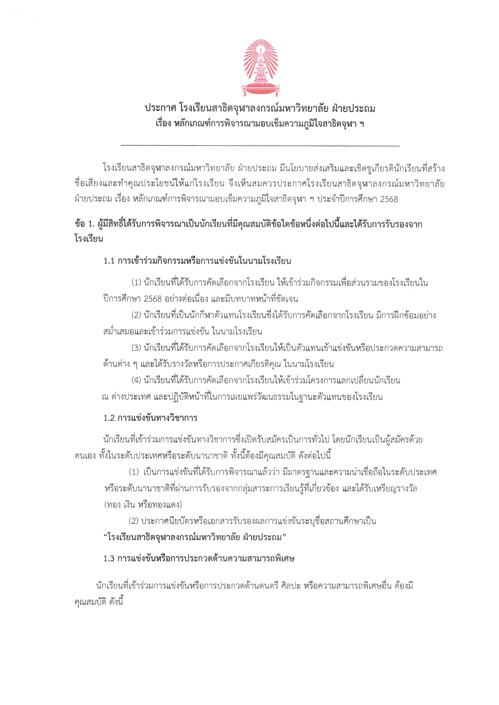 หลักเกณฑ์การพิจารณามอบเข็มความภูมิใจสาธิตจุฬาฯ ประจำปีการศึกษา 2568Web Master2026-02-09T14:41:58+07:00February 6, 2026|Read More