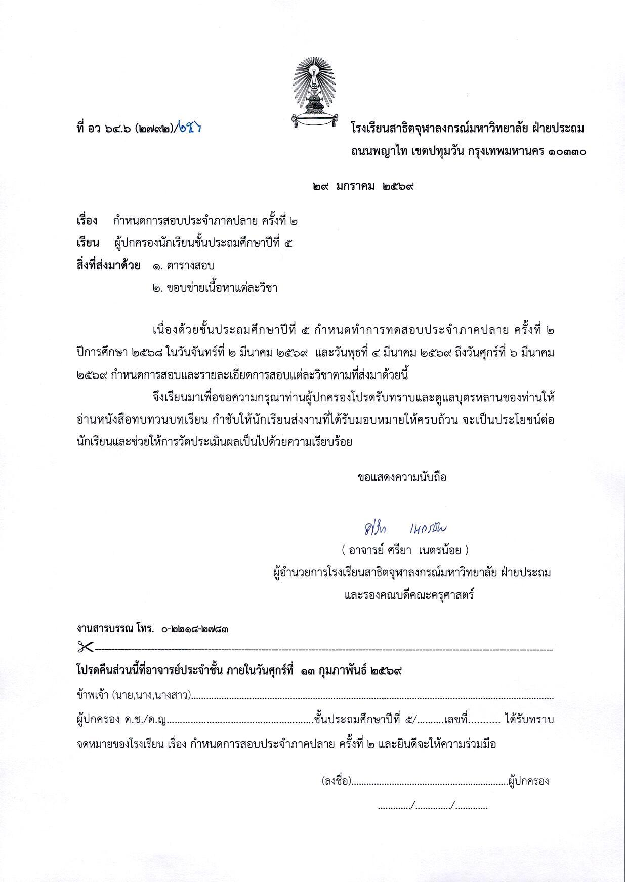 การรับสมัครบุคคลทั่วไปเพื่อคัดเลือกเข้าศึกษาชั้นประถมศึกษาปีที่ 1 โรงเรียนสาธิตจุฬาลงกรณ์มหาวิทยาลัย ฝ่ายประถม ปีการศึกษา 2569