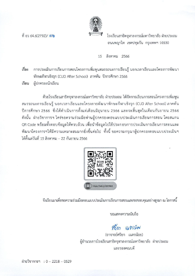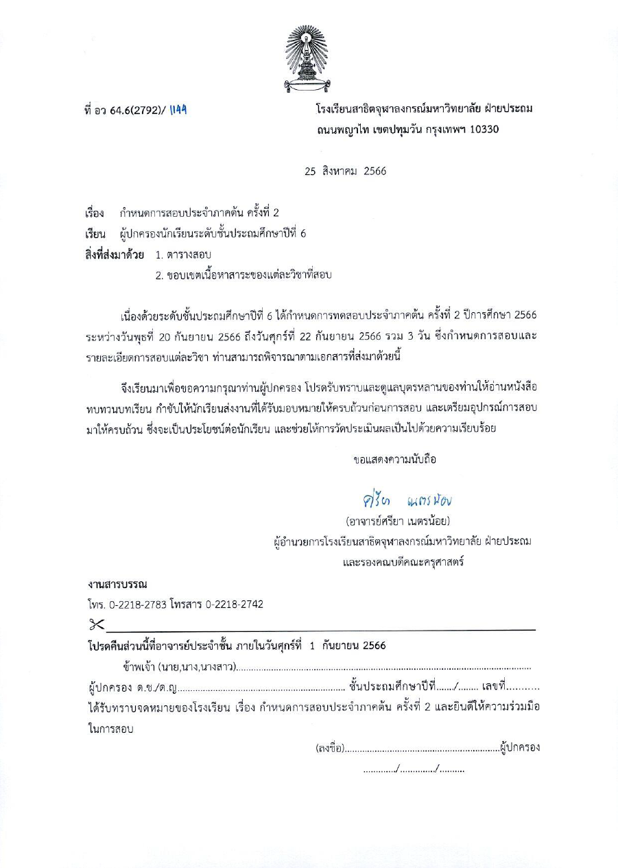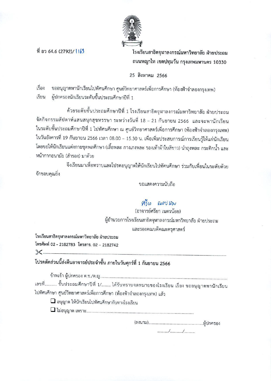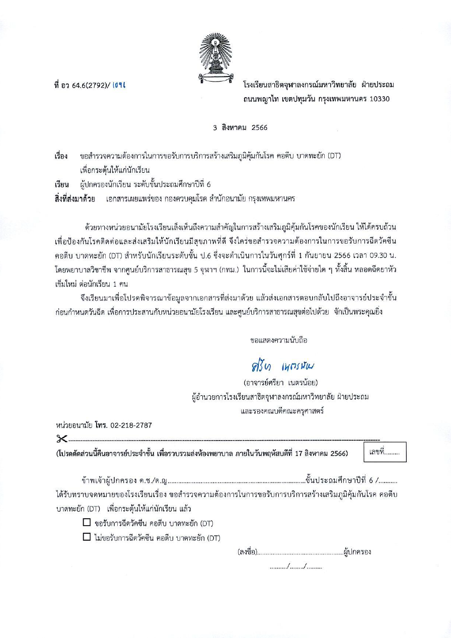 เรียน ผู้ปกครองนักเรียนโรงเรียนสาธิตจุฬาลงกรณ์มหาวิทยาลัย ฝ่ายประถม เรื่อง มาตรการปฏิบัติตนเพื่อลดการแพร่เชื้อทางเดินหายใจจากไวรัส RSV และโรคไข้หวัดใหญ่ในโรงเรียน [...]