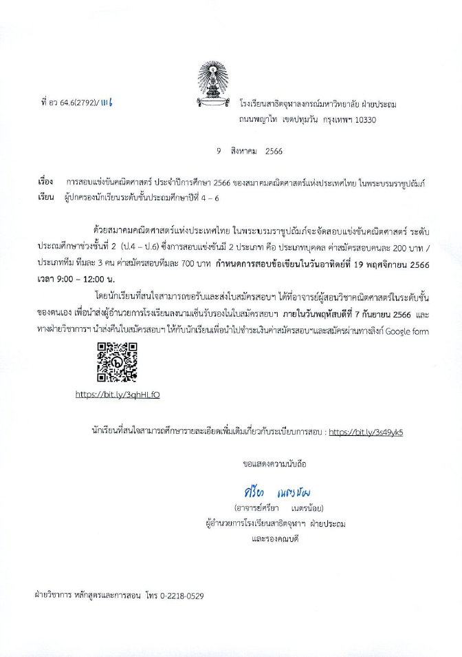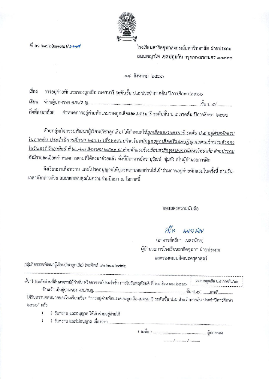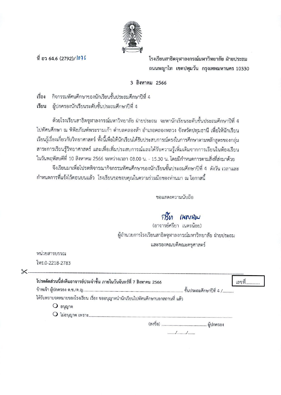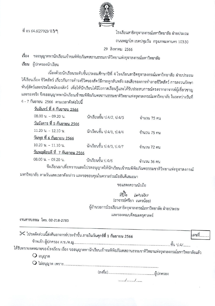 เรียน ผู้ปกครองนักเรียนโรงเรียนสาธิตจุฬาลงกรณ์มหาวิทยาลัย ฝ่ายประถม เรื่อง มาตรการปฏิบัติตนเพื่อลดการแพร่เชื้อทางเดินหายใจจากไวรัส RSV และโรคไข้หวัดใหญ่ในโรงเรียน [...]