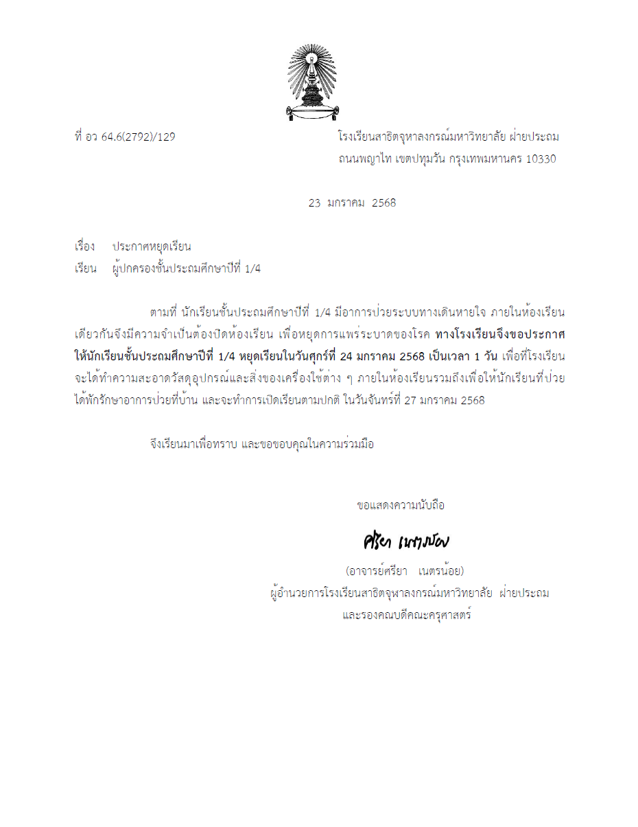 จดหมายโรงเรียน เรื่อง ประกาศหยุดเรียน By Web Master|2025-01-23T13:49:59+07:00January 23, 2025|จดหมายแจ้งจากโรงเรียน| Read More