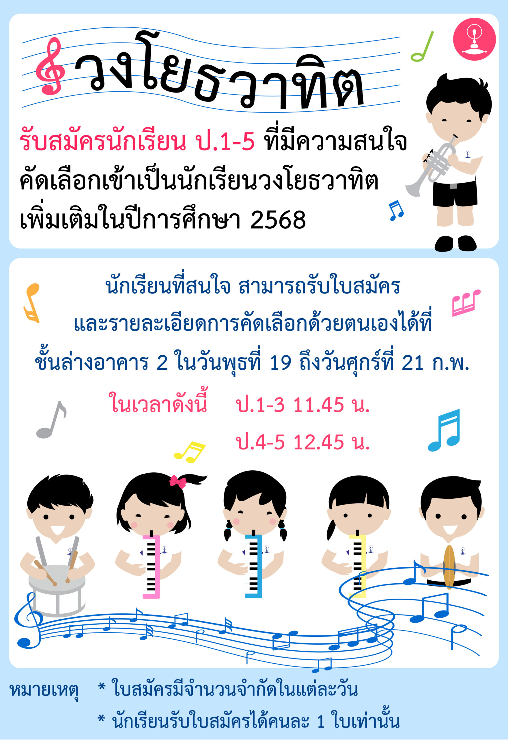 วงโยธวาทิตโรงเรียนสาธิตจุฬาลงกรณ์มหาวิทยาลัย ฝ่ายประถม เปิดรับสมัครนักเรียนชั้นประถมศึกษาปีที่ 1-5 ที่มีความสนใจคัดเลือกเข้าเป็นนักเรียนวงโยธวาทิต เพิ่มเติม ในปีการศึกษา 2568 นักเรียนที่สนใจสามารถรับใบสมัครและรายละเอียดการคัดเลือกด้วยตนเองได้ที่ชั้นล่างอาคาร 2 [...]