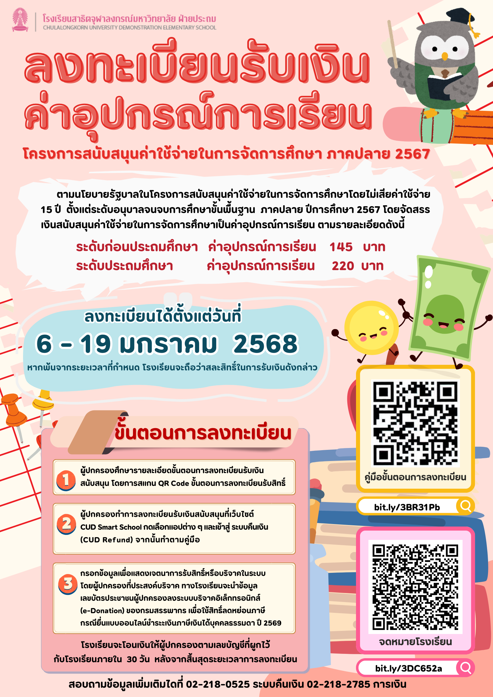 โรงเรียนสาธิตจุฬาลงกรณ์มหาวิทยาลัย ฝ่ายมัธยม เปิดรับสมัครนักเรียนเข้าร่วมโครงการเตรียมความพร้อม ม.1 ปีการศึกษา 2568 รับเฉพาะนักเรียนโรงเรียนสาธิตจุฬาฯ เท่านั้น ค่าลงทะเบียนเรียน กลุ่มละ [...]