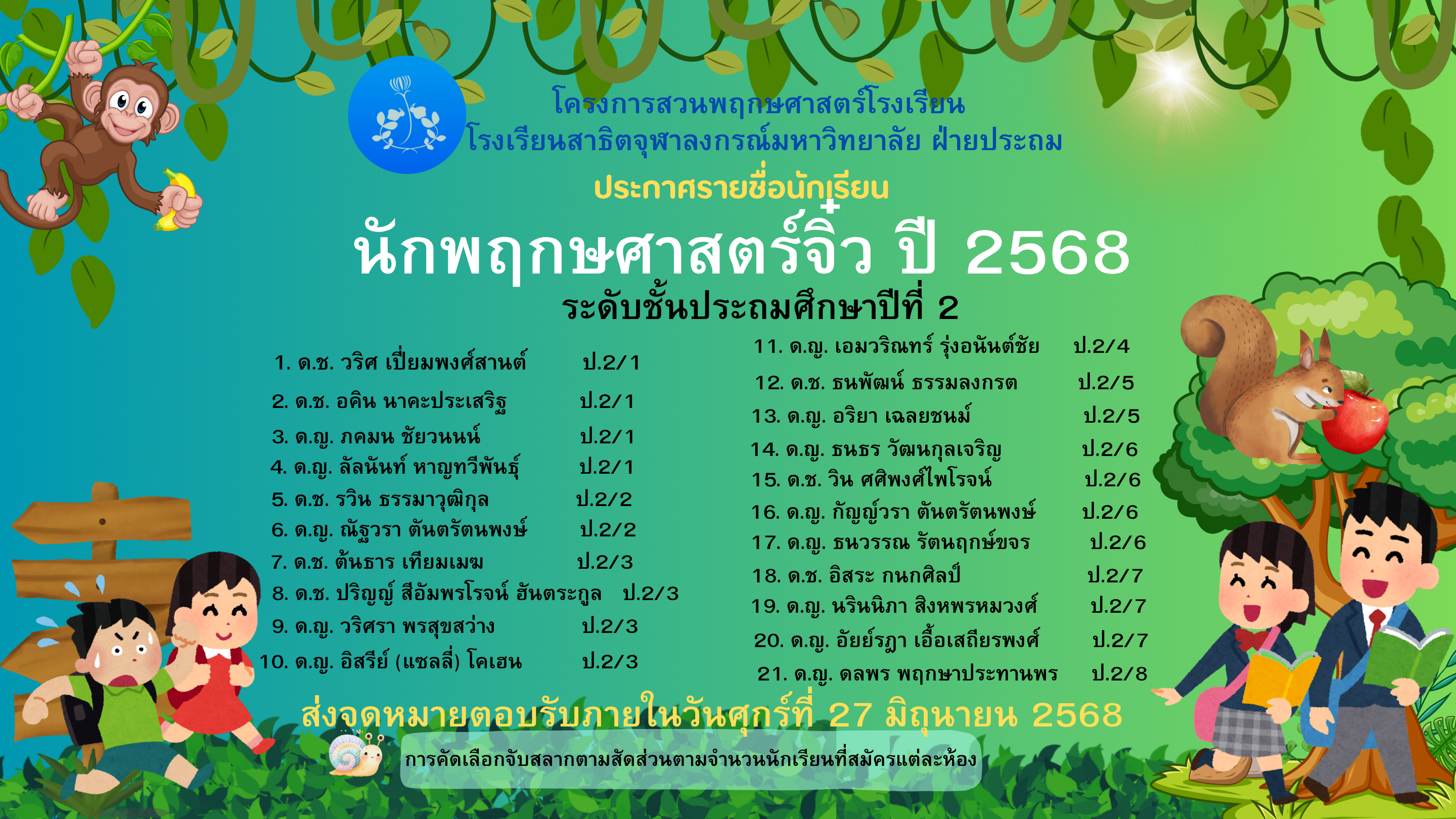 ประกาศผลการคัดเลือกนักเรียนชั้นประถมศึกษาปีที่ 2 และ 3 ที่ผ่านการเข้าร่วม 🌱”โครงการนักพฤกษศาสตร์จิ๋ว” 🌱 ประจำปีการศึกษา 2568