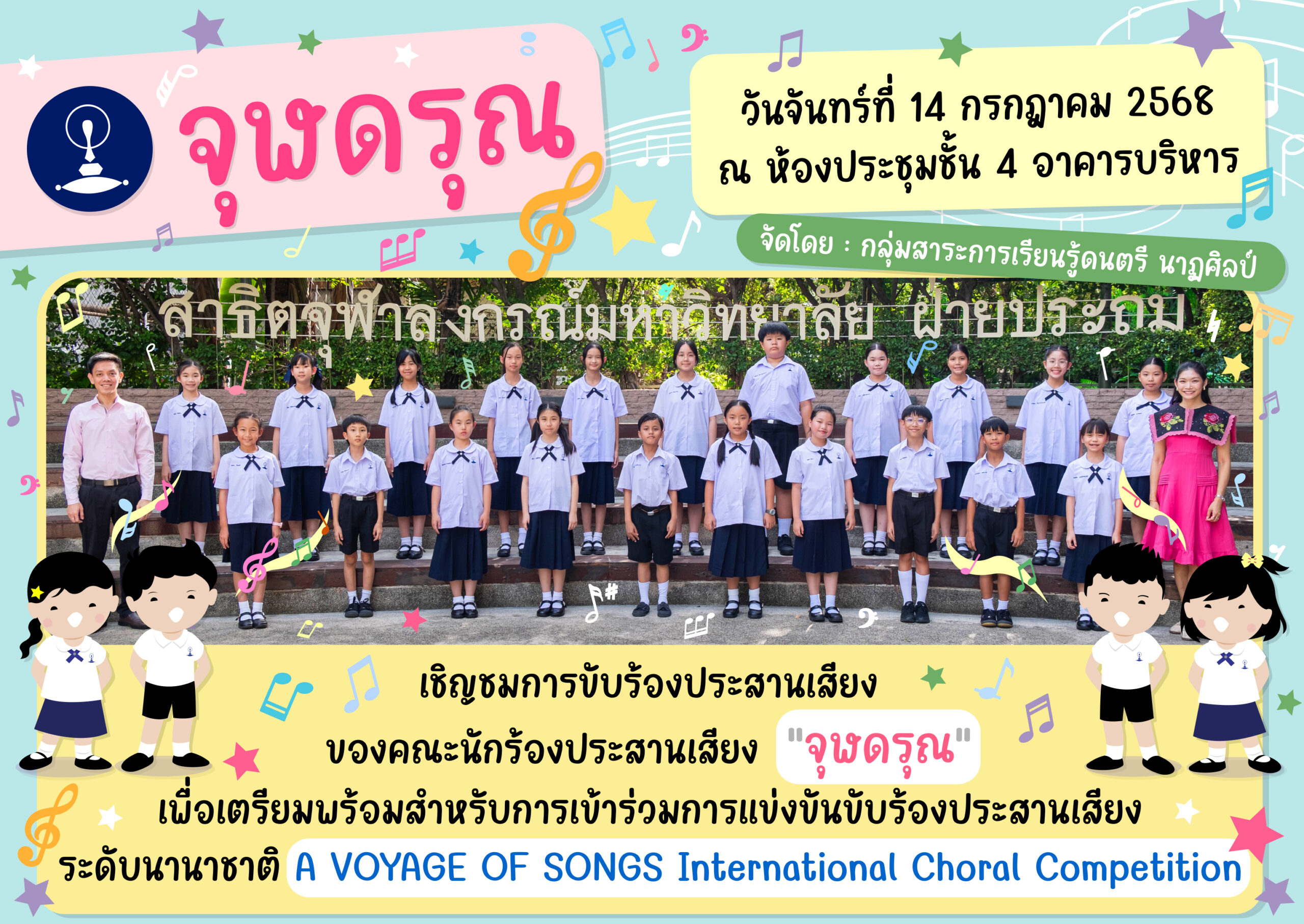 ขอเชิญชมการแสดง และร่วมส่งกำลังใจให้กับ การแสดงขับร้องประสานเสียง ของคณะนักร้องประสานเสียง “จุฬดรุณ”