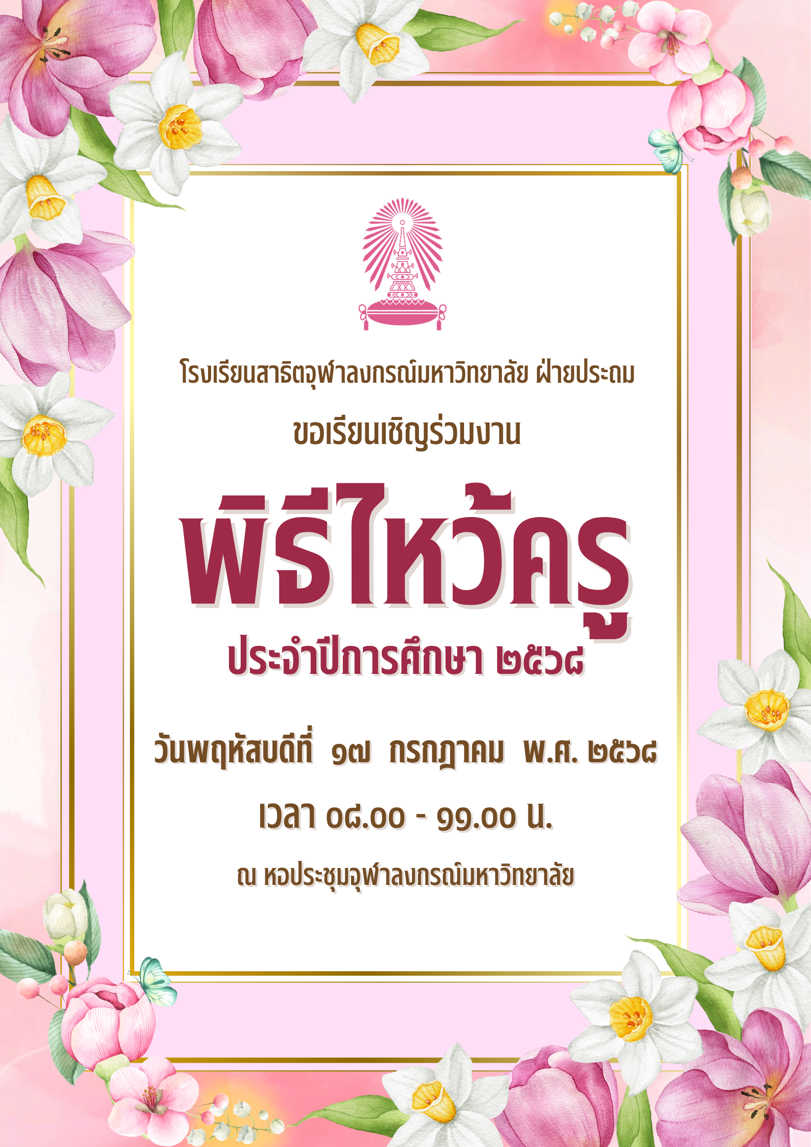 โรงเรียนสาธิตจุฬาลงกรณ์มหาวิทยาลัย ฝ่ายประถม กำหนดจัดพิธีไหว้ครู ประจำปีการศึกษา 2568