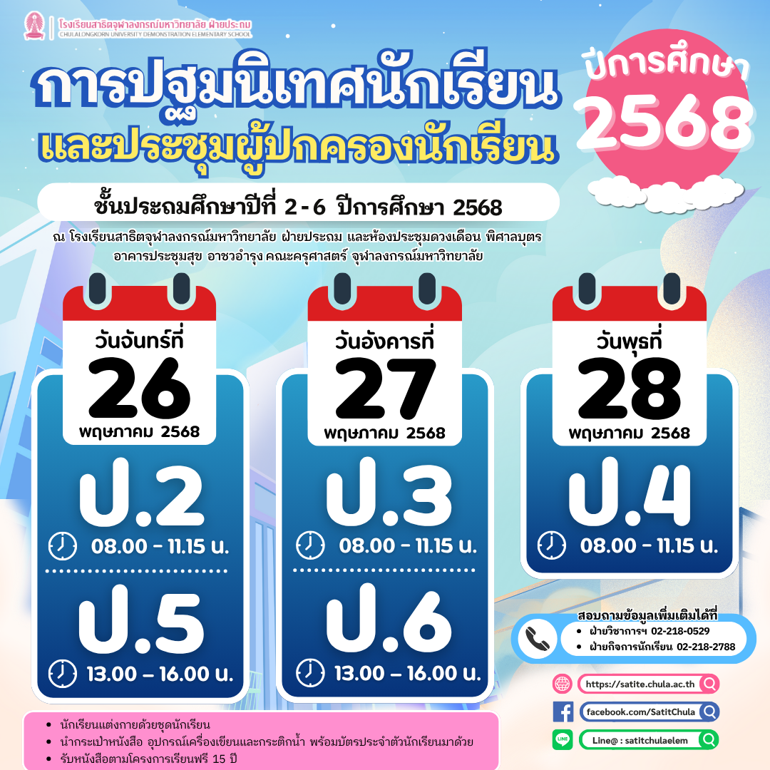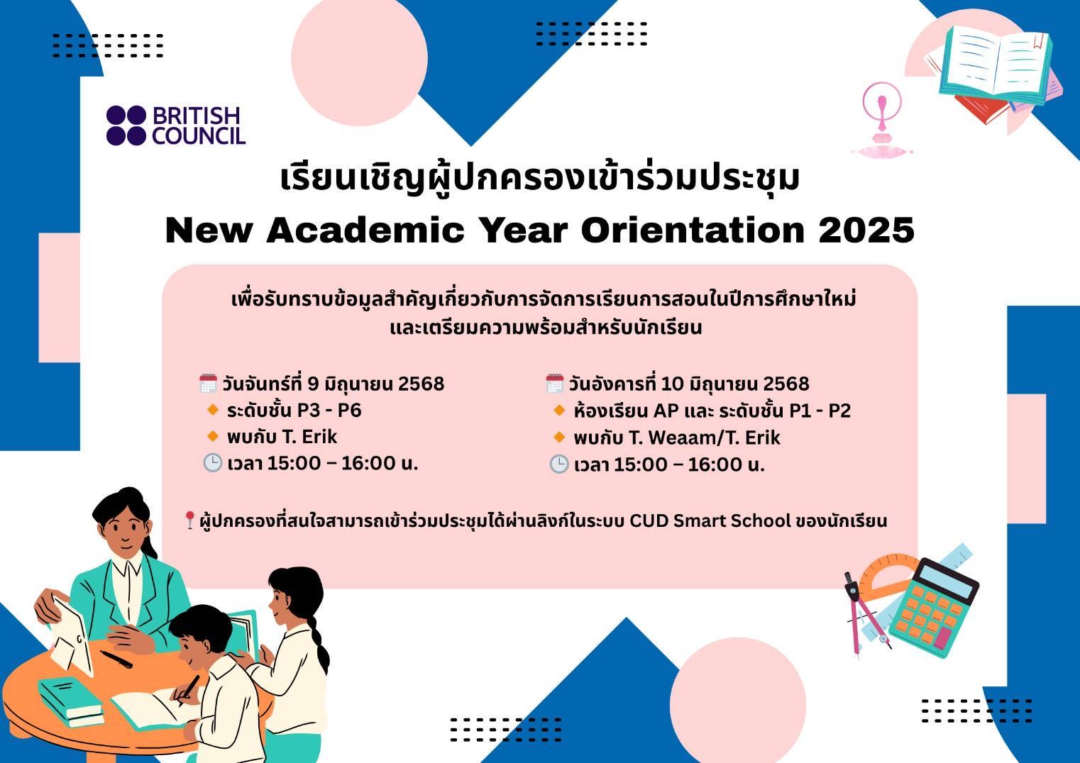 โครงการเรียนภาษาอังกฤษ โดยสถาบันบริติช เคานซิล (British Council) โรงเรียนสาธิตจุฬาลงกรณ์มหาวิทยาลัย ฝ่ายประถม ขอเรียนเชิญผู้ปกครองเข้าร่วมประชุม New Academic Year Orientation 2025