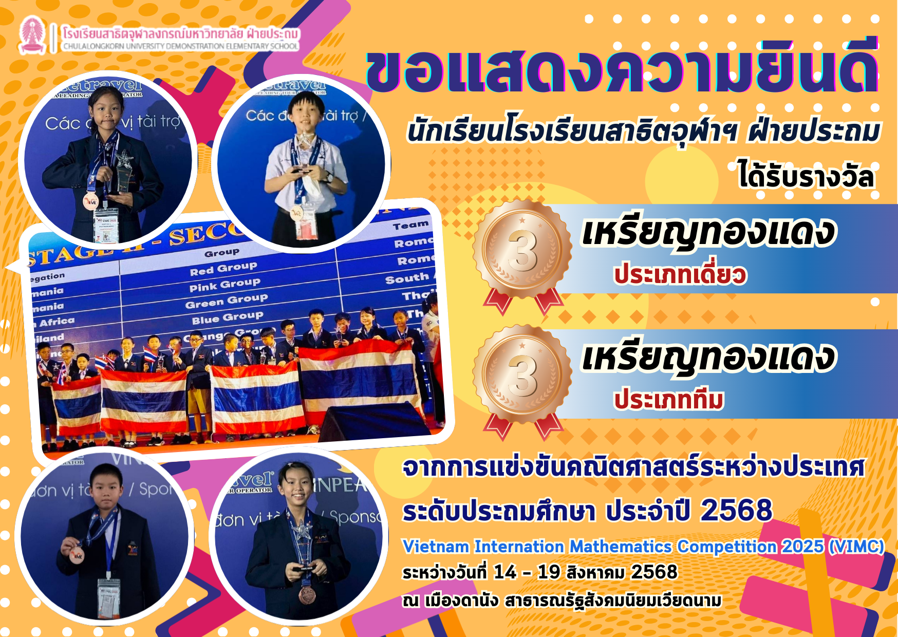 โรงเรียนสาธิตจุฬาลงกรณ์มหาวิทยาลัย ฝ่ายประถม 🎉 ขอแสดงความยินดีกับนักเรียน 🎉 ที่เข้าร่วมการแข่งขันคณิตศาสตร์ระหว่างประเทศ ระดับประถมศึกษา ประจำปี 2568 Vietnam [...]