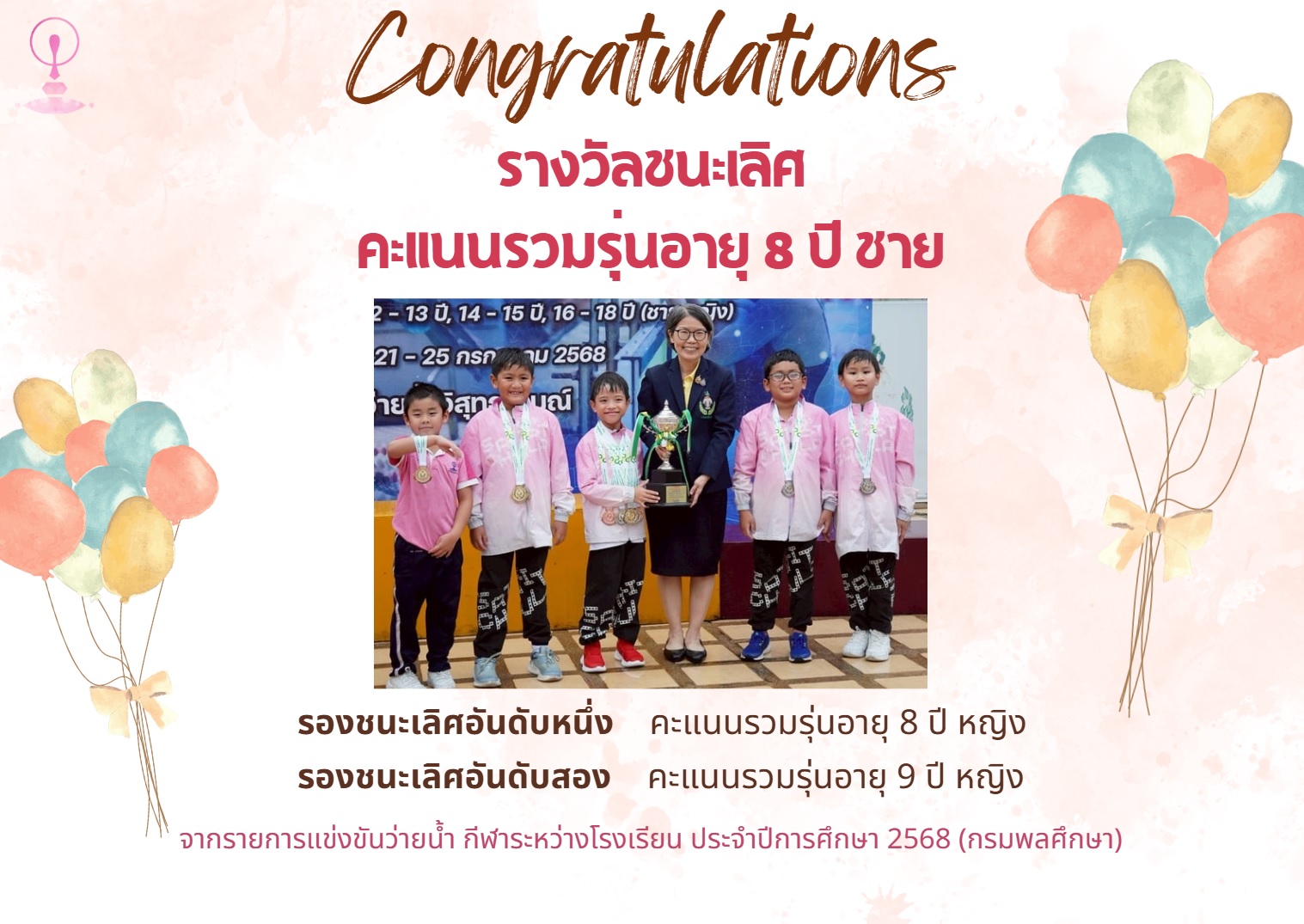 ขอแสดงความยินดีกับนักเรียนระดับอนุบาล ที่ได้รับรางวัล ประเภท Children’s Drawing จากการประกวดและจัดแสดงนิทรรศการ ในรายการ 2025 Korea International Youth Olympiad ระหว่างวันที่ 28 – 30 กรกฎาคม 2568 ณ สาธารณรัฐเกาหลี