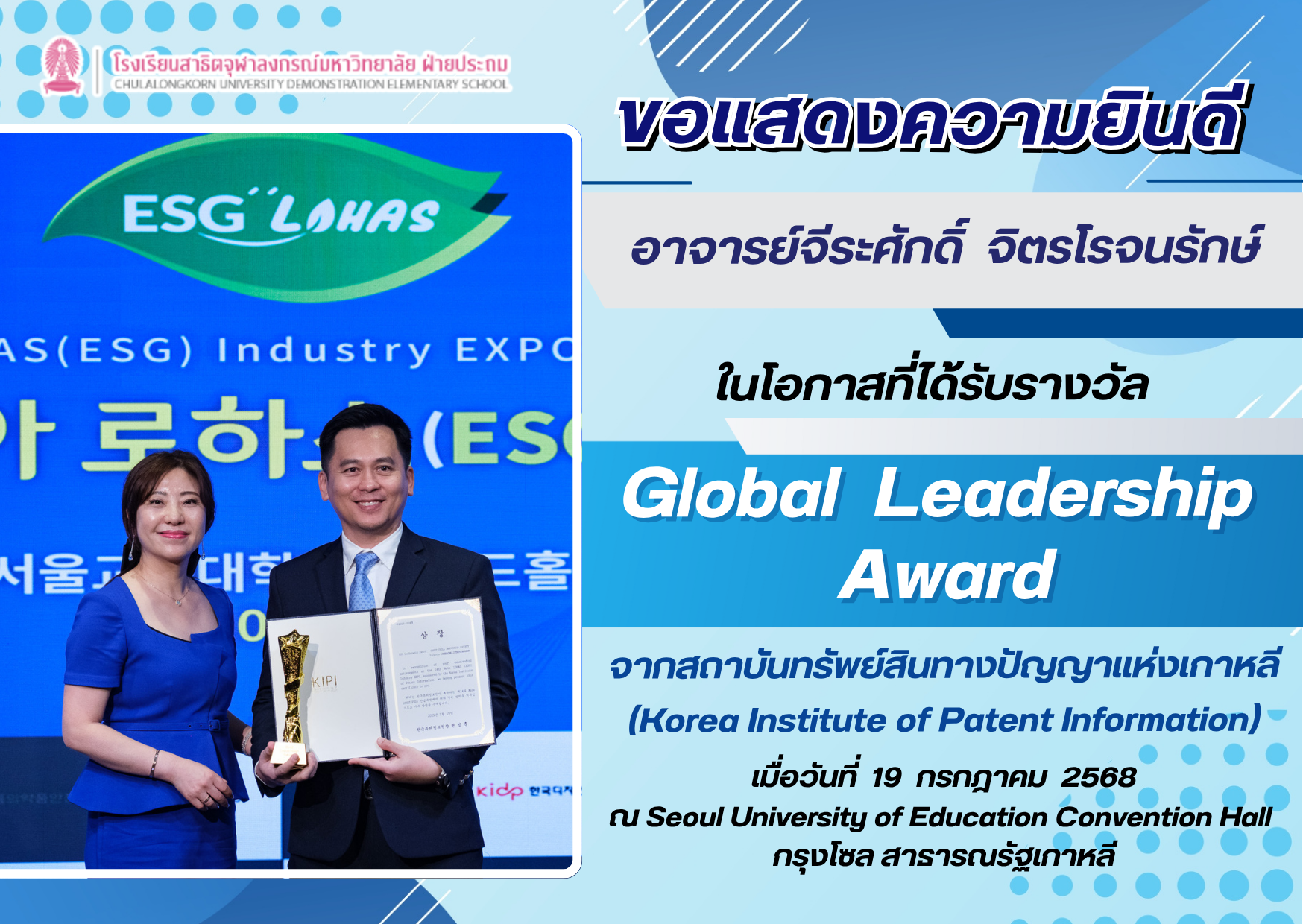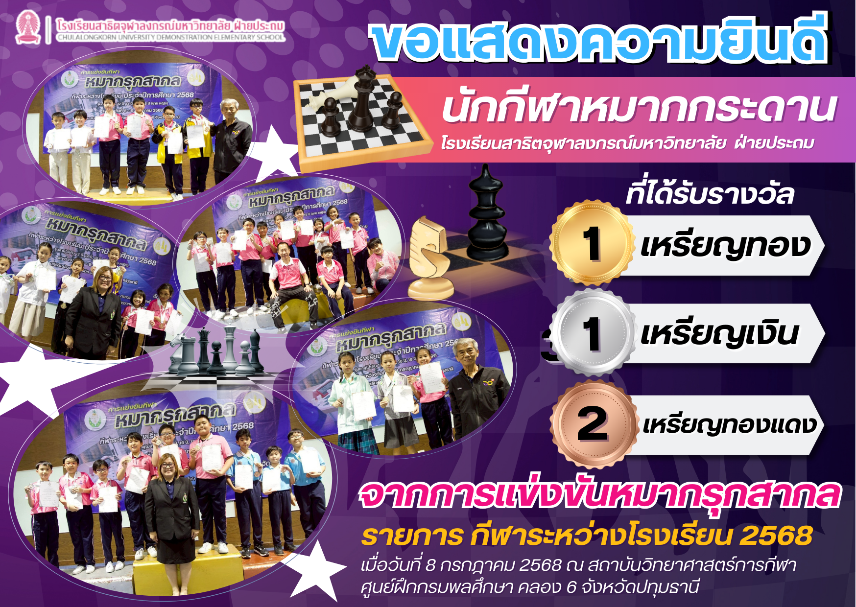 วันศุกร์ที่ 1 สิงหาคม 2568 อาจารย์ศรียา เนตรน้อย ผู้อำนวยการโรงเรียนสาธิตจุฬาลงกรณ์มหาวิทยาลัย ฝ่ายประถม และรองคณบดีคณะครุศาสตร์ ร่วมแสดงความยินดีกับนักเรียนระดับอนุบาล [...]