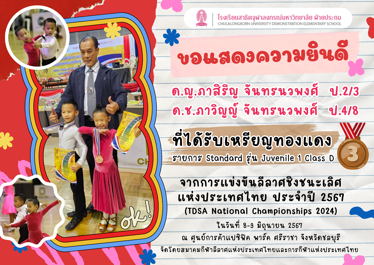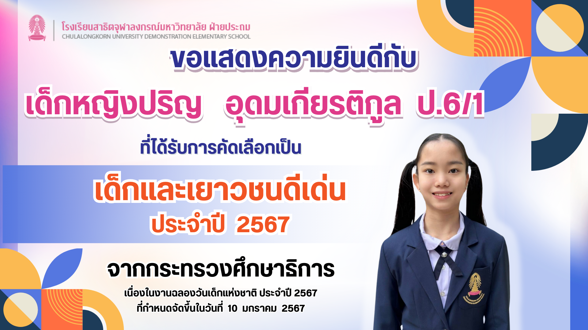 โรงเรียนสาธิตจุฬาลงกรณ์มหาวิทยาลัย ฝ่ายประถม ขอแสดงความยินดีกับอาจารย์และนิสิตที่ได้รับรางวัลผลงานประดิษฐ์คิดค้น ประจำปี 2567 จากงาน “วันนักประดิษฐ์ ประจำปี [...]