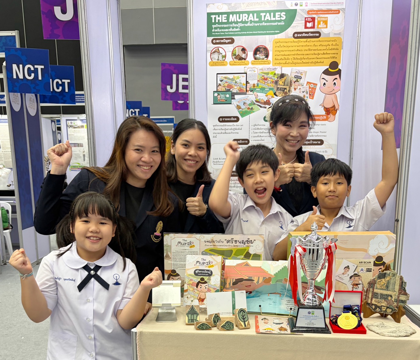 ซึ่งนักเรียนโรงเรียนสาธิตจุฬาลงกรณ์มหาวิทยาลัย ฝ่ายประถม ได้รับ “รางวัลรองชนะเลิศอันดับ 1” และ “รางวัลเหรียญทอง” พร้อมเงินรางวัล 15,000 บาท จากผลงาน The Mural Tales: ชุดกิจกรรมการเรียนรู้นิทานพื้นบ้านจากจิตกรรมฝาผนังสำหรับเจเนอเรชั่นอัลฟ่า ซึ่งเป็นนวัตกรรมการเรียนรู้ที่บูรณาการสาระวิชาศิลปะการออกแบบสร้างสรรค์ ประวัติศาสตร์ ภาษาไทย และเทคโนโลยีดิจิทัล โดยมีคณะนักประดิษฐ์ ดังนี้