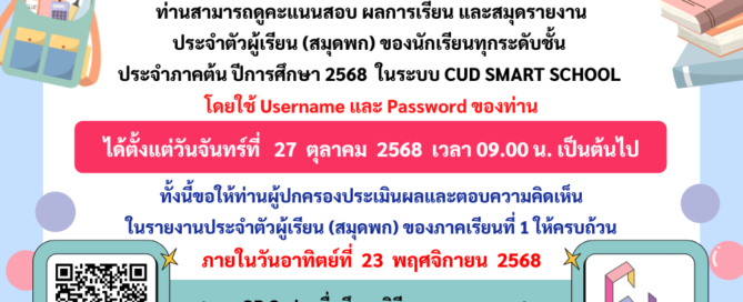 เรียน ผู้ปกครองนักเรียนโรงเรียนสาธิตจุฬาลงกรณ์มหาวิทยาลัย ฝ่ายประถม ท่านสามารถดูคะแนนสอบ ผลการเรียน และสมุดรายงานประจำตัวผู้เรียน (สมุดพก) ของนักเรียนทุกระดับชั้น ประจำภาคต้น ปีการศึกษา [...]