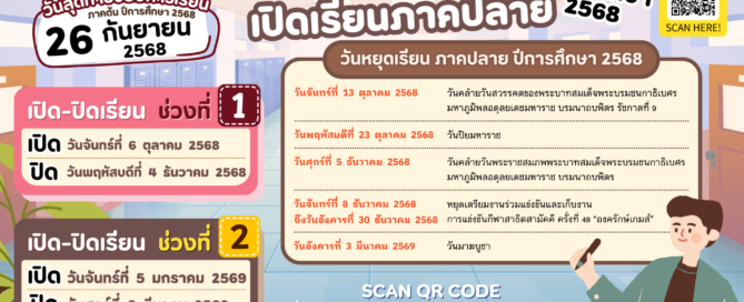 เรียน ผู้ปกครองนักเรียน เรื่อง การปิดเรียนภาคต้น และเปิดเรียนภาคปลาย ปีการศึกษา 2568 ด้วยวันศุกร์ที่ 26 กันยายน [...]